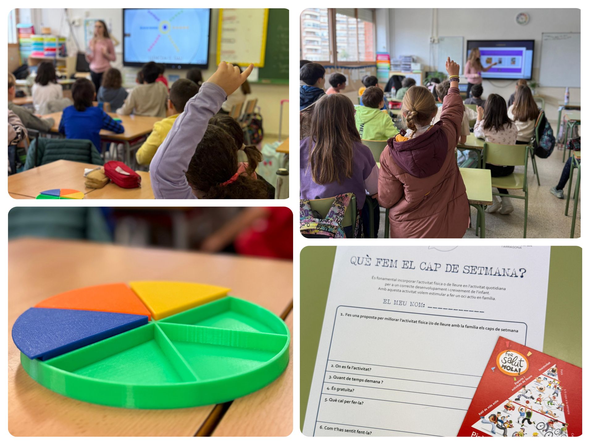 A través d’un trivial, l’alumnat ha pogut reflexionar sobre diferents aspectes relacionats amb els hàbits saludables: l’ús responsable de les pantalles, la importància de l’activitat física, una alimentació equilibrada i la cura de l’autoestima.