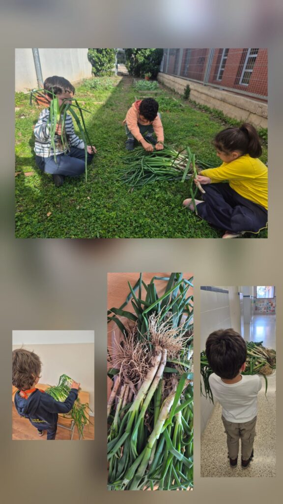 Aquesta setmana hem collit els calçots que vam plantar al desembre. Hem pogut mirar les parts del calçot, la textura, l’olor…Hem parlat de la tradició de la calçotada tan arrelada a la nostra terra. Ens ha fet molta il•lusió!