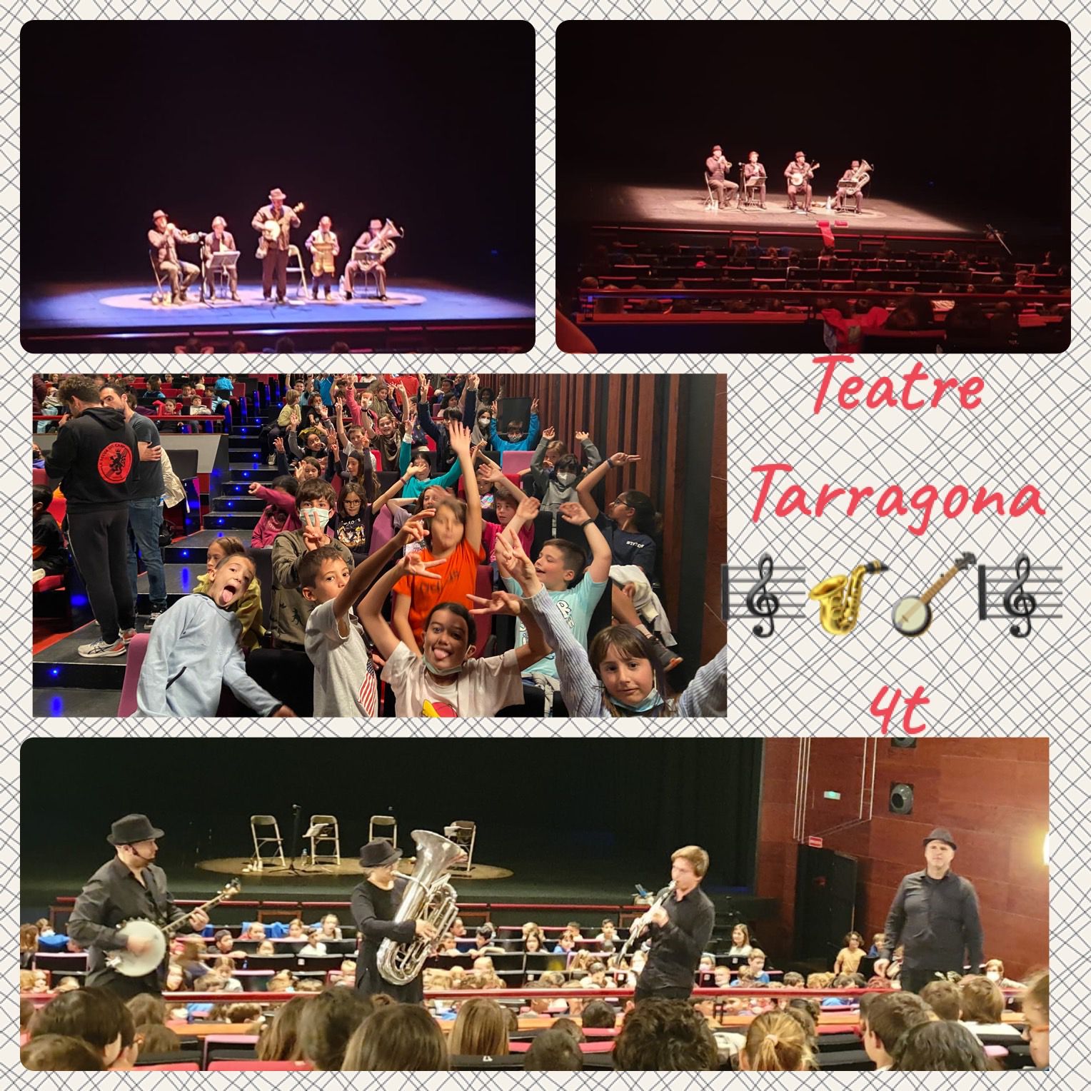 Sortida al teatre Tarragona: “Els orígens del jazz” Feu un comentari / Per admin / 5 de maig de 2022 / 4t Portada Primària / Educació artística, Educació musical, jazz, Teatre Tarragona Aquesta setmana els nens i les nenes de 4t curs hem anat al teatre Tarragona a veure l’espectacle “Els orígens del jazz”. Ens hem divertit i hem après moltíssimes coses sobre aquest popular i reconegut estil musical.