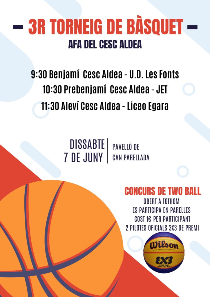 Aquest proper dissabte 7 de juny al matí, finalitzarem l’extraescolar de bàsquet amb un torneig al Pavelló de Can Parellada on hi esteu tots i totes convidats a assistir i a animar als nostres equips.