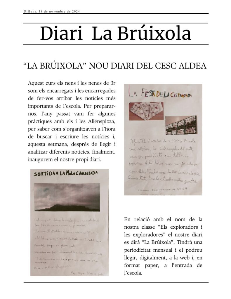 “LA BRÚIXOLA” NOU DIRARI DEL CESC ALDEA (3r) Feu un comentari / Per admin / 18 de novembre de 2024 / 3r Comunitat de Mitjans General Notícies de l'escola 📰 Portada