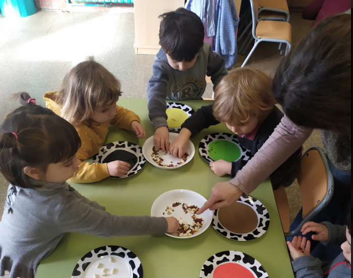 El passat 17 de febrer vam realitzar un taller a l’aula sobre les LLAVORS. La Montse ens va explicar una petita història amb unes titelles sobre la llavor. Vam estar sorpresos/es amb els diferents personatges que sortien de la seva bosseta. Més tard, ella ens havia preparat diferents racons amb material i ens va demanar d’organitzar-nos per grups i deixar un temps per poder observar, manipular i explorar allò que podiem trobar a cada racó: