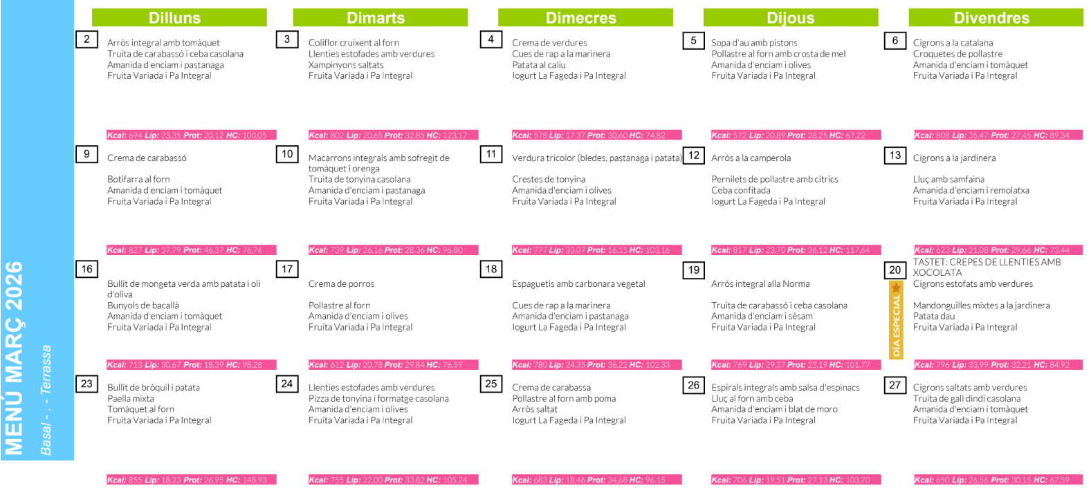 MENÚ DEL MES