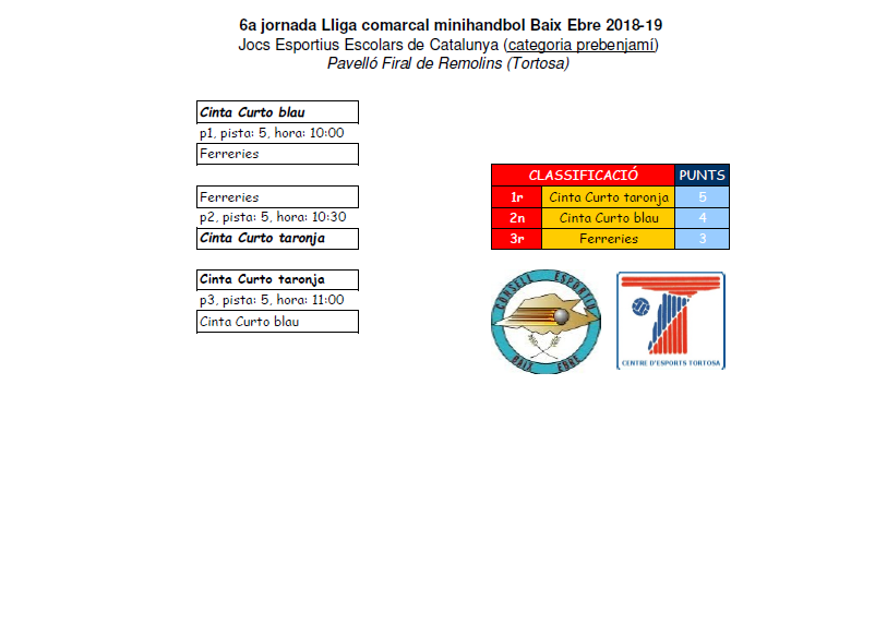 8a JORNADA JJEE DE CATALUNYA DE MINIHANDBOL AL BAIX EBRE. 9 MARÇ 2019.