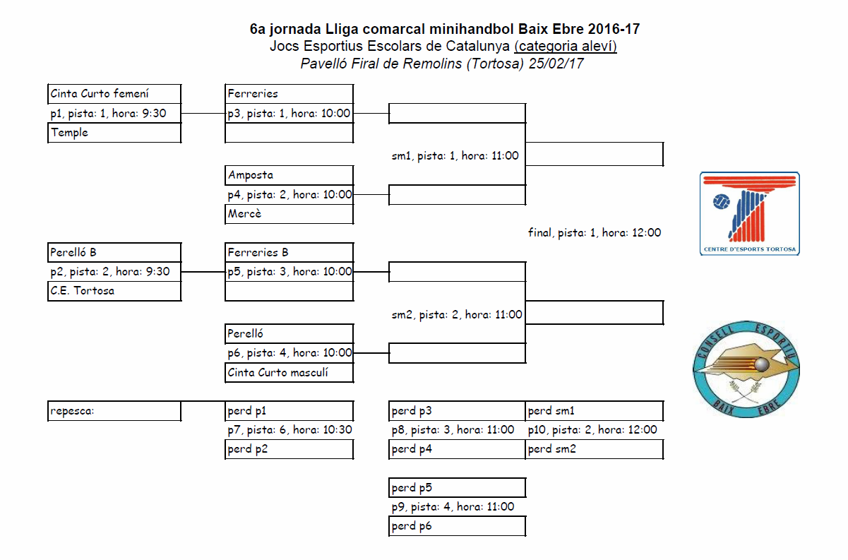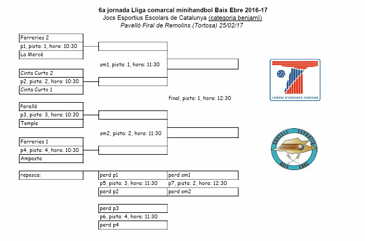 6a JORNADA MINI-HANDBOL JJEE DE CATALUNYA 25 febrer 2017 Escola Cinta Curto23/02/17 Us adrecem horaris i calendaris de la jornada.
