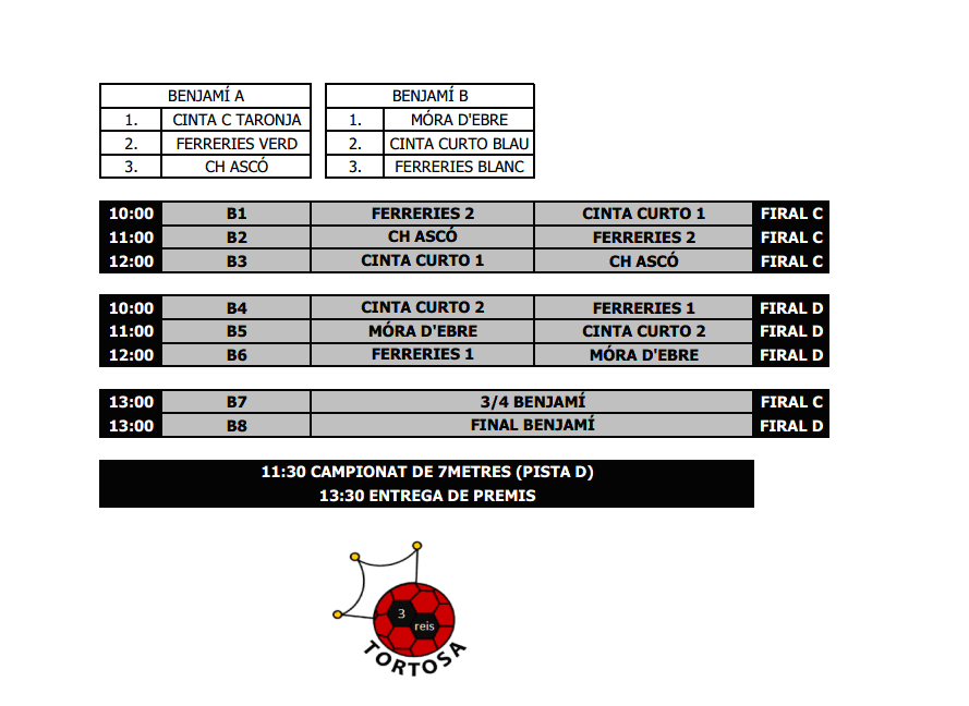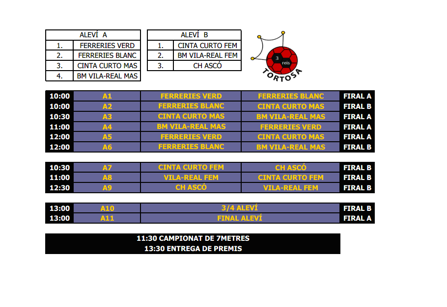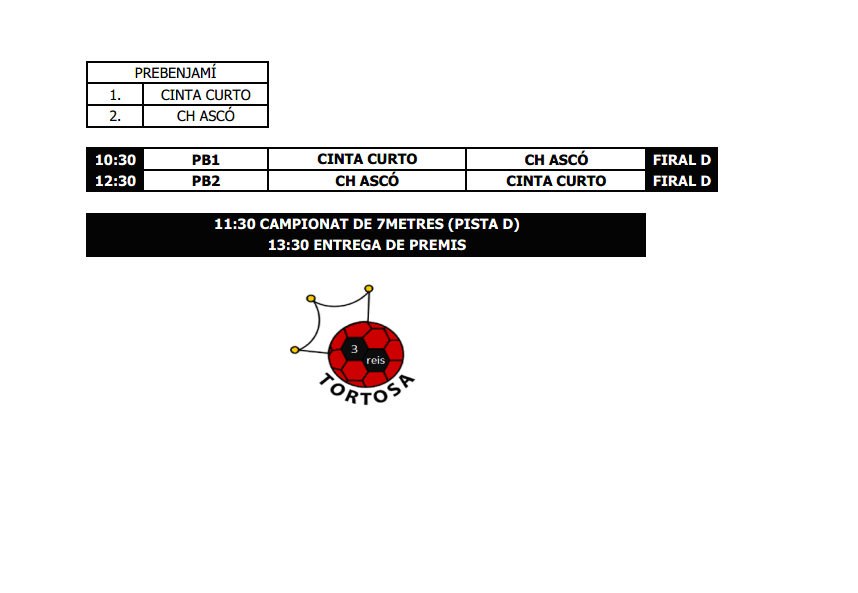 CALENDARIS I HORARIS TORNEIG TRES REIS. Diumenge 7 de gener de 2018 pel matí. PAVELLÓ FIRAL DE REMOLINS. Escola Cinta Curto05/01/18