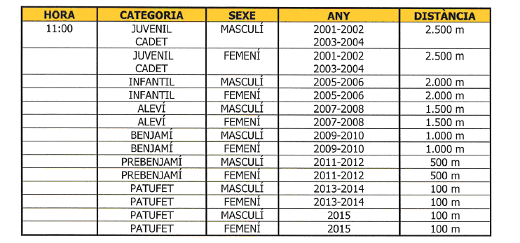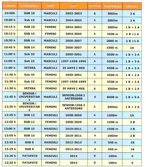 Curses, distàncies a córrer i ordre de curses :