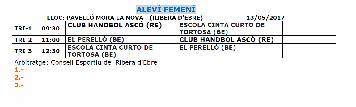 L’equip guanyador de cada categoria obtindrà el dret classificatori a les Finals Nacionals de Catalunya en representació de les Terres de l’Ebre.