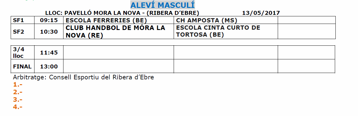 Us comuniquem que finalment, totes les finals es faran el dissabte 13 de maig.
