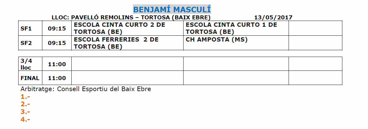 BENJAMÍ MASCULÍ ==> PAVELLÓ FIRAL DE REMOLINS A TORTOSA.