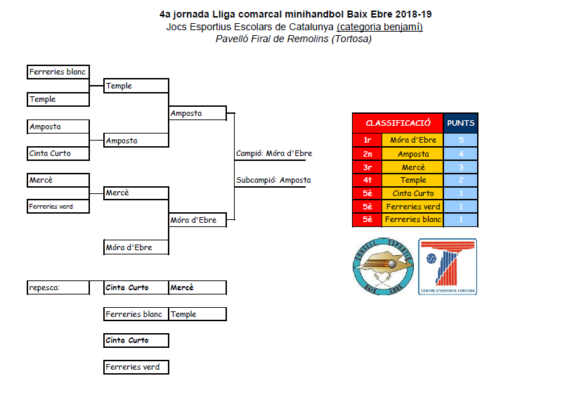 Jornada celebrada el passat dissabte dotze de gener de 2019 al pavelló firal de Remolins amb la participació de dinou equips de les comarques del Baix Ebre, Montsià i Ribera d’Ebre en les categories prebenjamí, benjamí i aleví, mixtes, femenins i masculins.