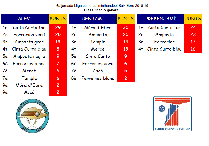 Resultats 6a jornada minihandbol.… Llegeix més»