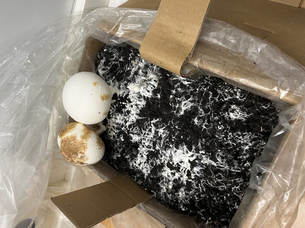 Per tancar aquest projecte d’aprenentatge, a l’aula hem realitzat un cultiu de xampinyons. L’experiència ha estat tot un èxit: hem observat com creixien setmana rere setmana fins que, finalment, hem pogut collir els primers fruits durant aquest primer trimestre.