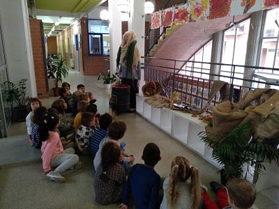 Aquesta setmana quan hem arribat a l’escola hi havia alguna cosa nova! Alguns l’han vist i ens ho han explicat a la resta del grup a la rotllana. Al vestíbul hi ha la castanyera, no és una persona de veritat, és un nino que porta guants, mocador, camisa, faldilla… i està torrant castanyes. L’hem anat a veure i hem vist que també hi havia fruites i fruits de tardor; castanyes, raïm, carbasses, fulles seques i magranes. L’hem observat molt bé i li hem cantat la cançó de la castanyera, creiem que li ha agradat molt!!! quina emoció ja queden pocs dies per la festa de la castanyada, i qui sap si veurem una castanyera de veritat?