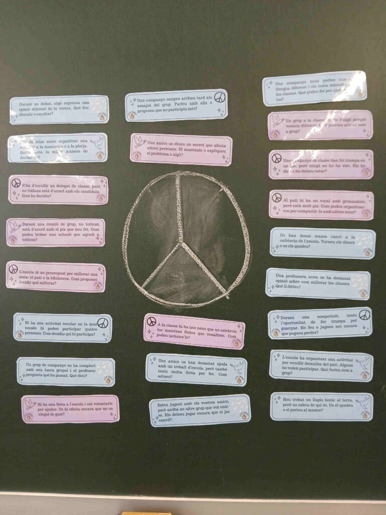 Ens ha agradat poder parlar sobre la pau i les diferents maneres on podem aconseguir que hi hagi pau. Ens hem centrat més amb les coses que ens passen el dia a dia i ens ha anat molt bé per parlar-ne tots junts. Sabem que no només és un dia i prou sinó cada dia que hi hem de pensar i ser-ne conscients. Per veure les fotos, cliqueu AQUÍ.