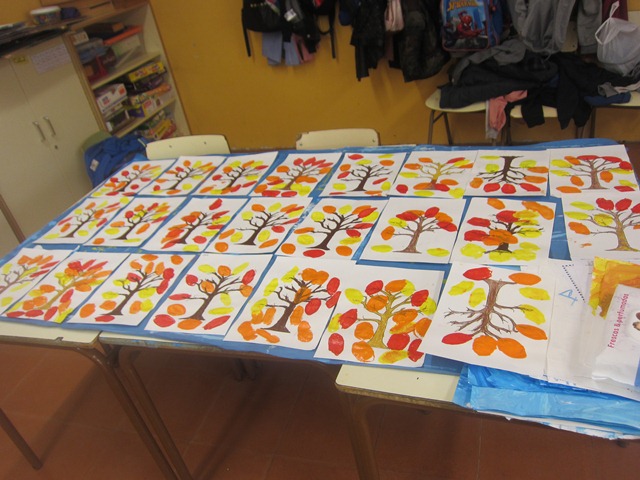 Els nens i nenes de primer i segon ens hem barrejat i hem fet dos tallers per celebrar la Castanyada: una castanya ben divertida i un bonic arbre de tardor.