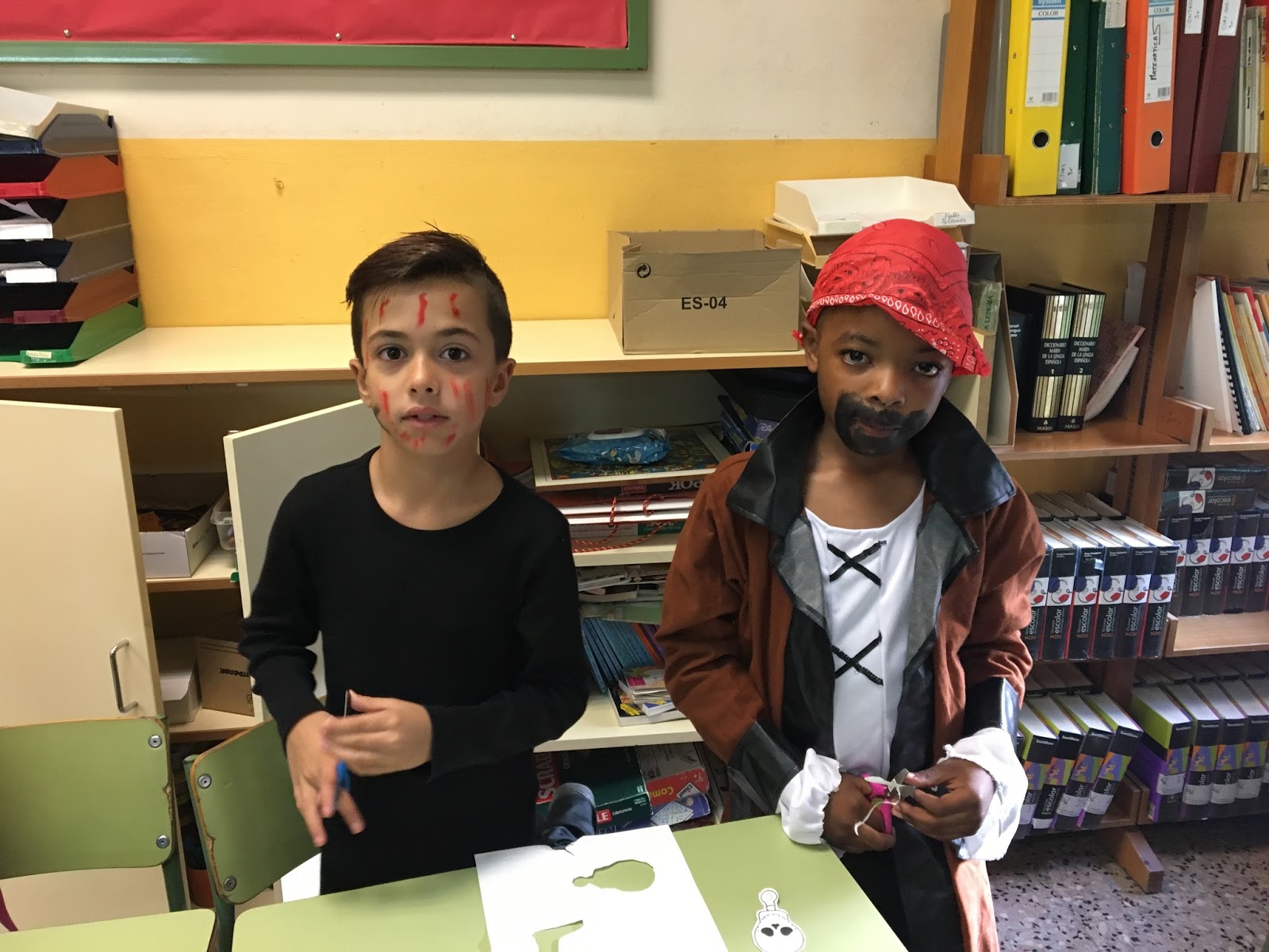 Durant el matí, els nens van fer tallers de manualitats a la classe, relacionades amb el tema de Halloween i també van passar pel túnel del terror que els hi havien muntat els mestres de cicle superior. Els nens que van voler, van venir disfressats de casa i, els qui no portaven disfressa, els hi vam pintar la cara terroríficament…..