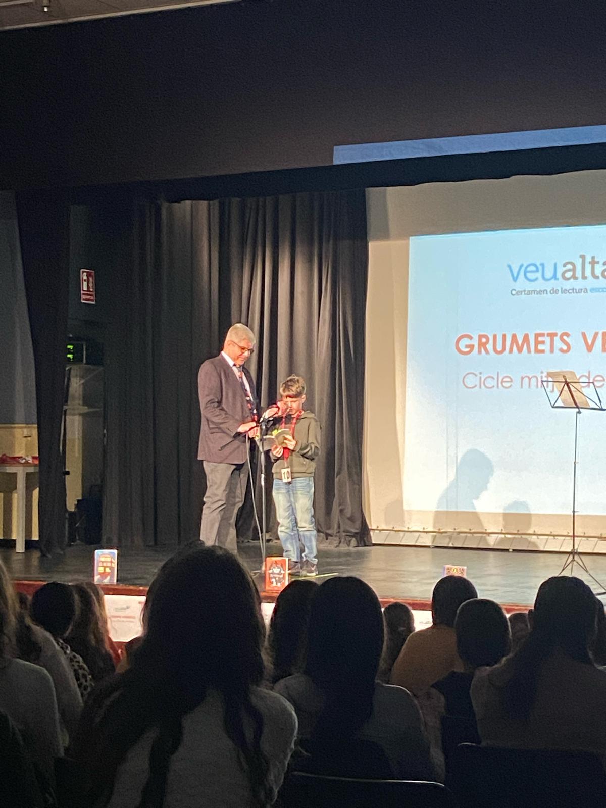Aquest dijous 13 de març els nostres representants el Jan S. i l’Andreu S. acompanyats per la mestra Sandra M. han estat participant en la 1a fase del concurs de lectura en veu alta. El certamen està organitzat en cinc categories que comprenen des de 3r de primària fins a 4t d’ESO. L’Andreu ho feia dins la categoria de Grumet Verd ( cicle superior) i el Jan en la categoria de Grumet Vermell ( cicle mig).
