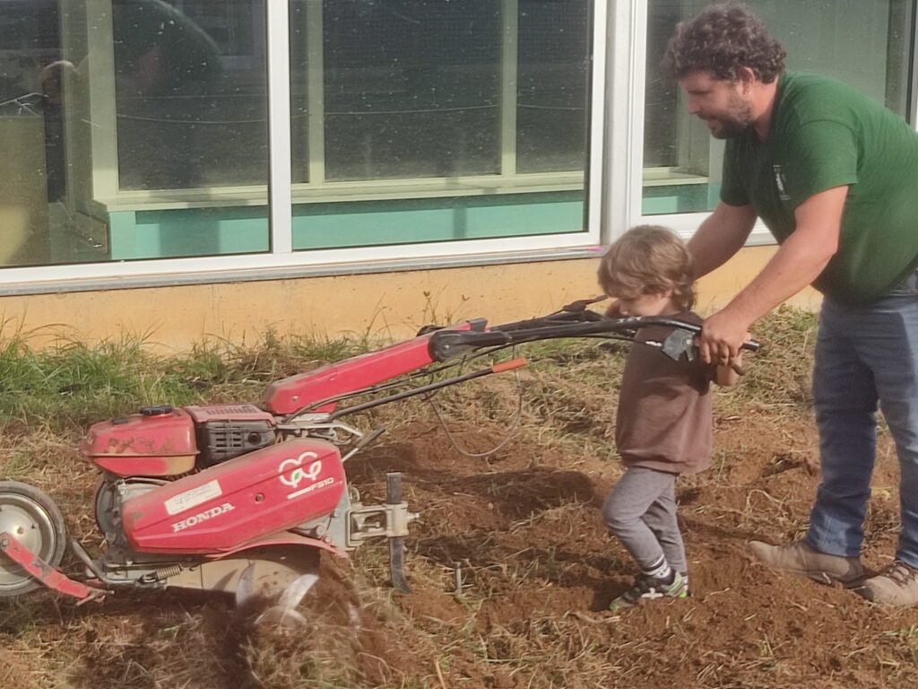 Abans però els infants de 4rt, 5è i 6è han fet tot el possible per a deixar el terreny preparat per a poder passar el multicultor.