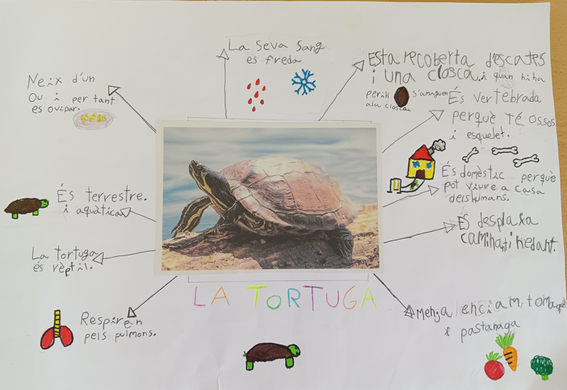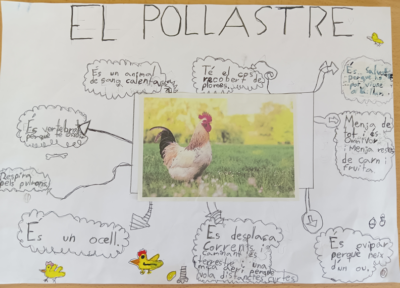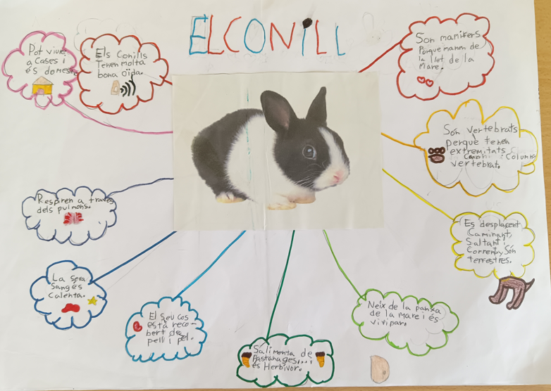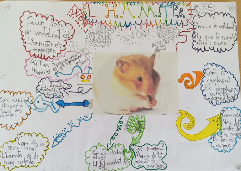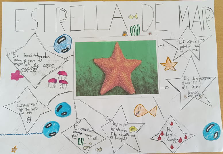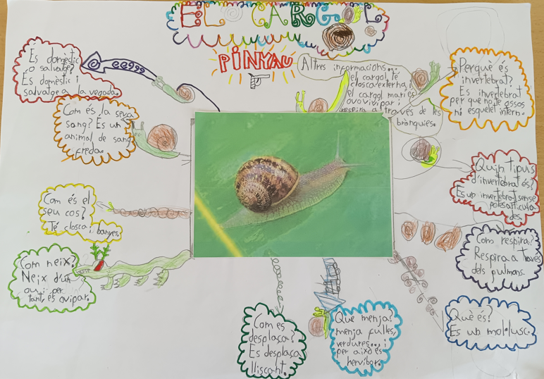 Cada grup ha triat un animal vertebrat i un animal invertebrat i ha hagut d’investigar les característiques d’aquests animals: el perquè són vertebrats o invertebrats, a quin grup pertanyen, com neixen, de què s’alimenten, com es desplacen, com respiren, quin tipus de sang tenen, com és el seu cos i altres curiositats.