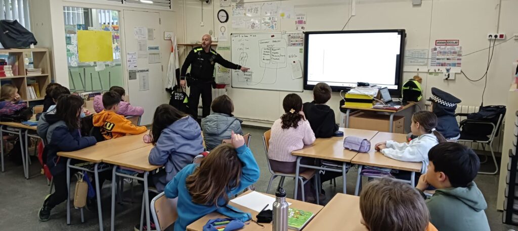 La primera setmana de febrer els infants de 4t van realitzar una activitat amb la polícia local de Santa Coloma de Cervelló per tal de millorar les actituds i conductes que tenim pel carrer per tal de tenir cura de la pròpia seguretat i respectar la dels demés.