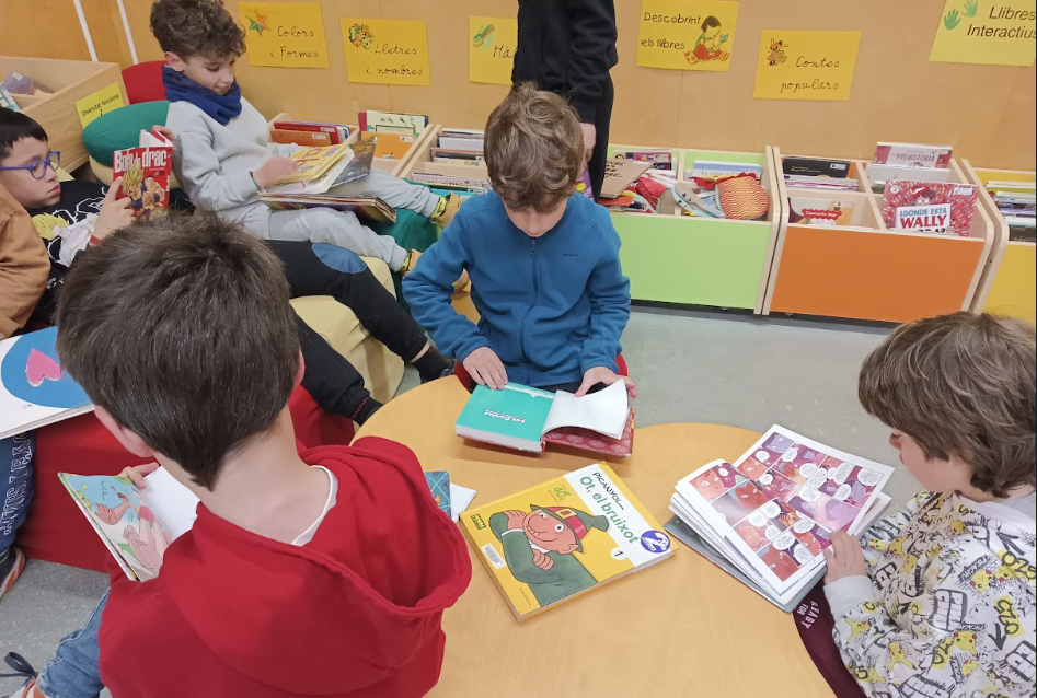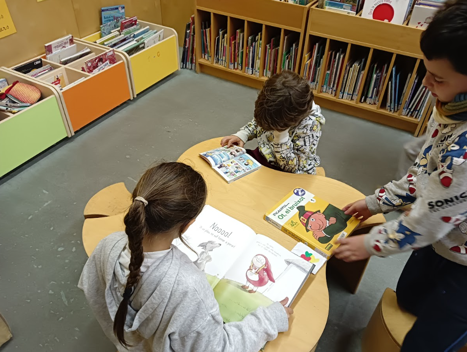 D’entrada, han pogut gaudir d’una estona de lectura lliure i relaxant en la sala infantil. Han pogut fullejar llibres de les diferents seccions i triar aquells que més han copsat la seva atenció. La majoria d’infants ha agafat algun llibre de préstec per continuar llegint a l’escola i a casa. ^-^