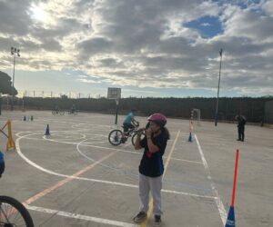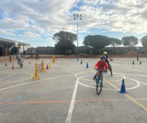 Aquesta pràctica és fonamental, ja que permet interioritzar els conceptes d’una manera més efectiva i divertida, però no és suficient. En una propera sessió, des de la Diputació de Barcelona i la Policia Local, els faran practicar en una petita ciutat preparada adequadament a la mateixa pista de l’escola.