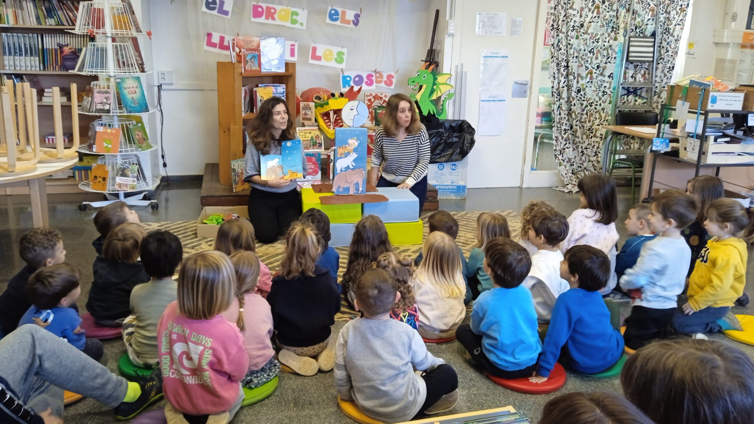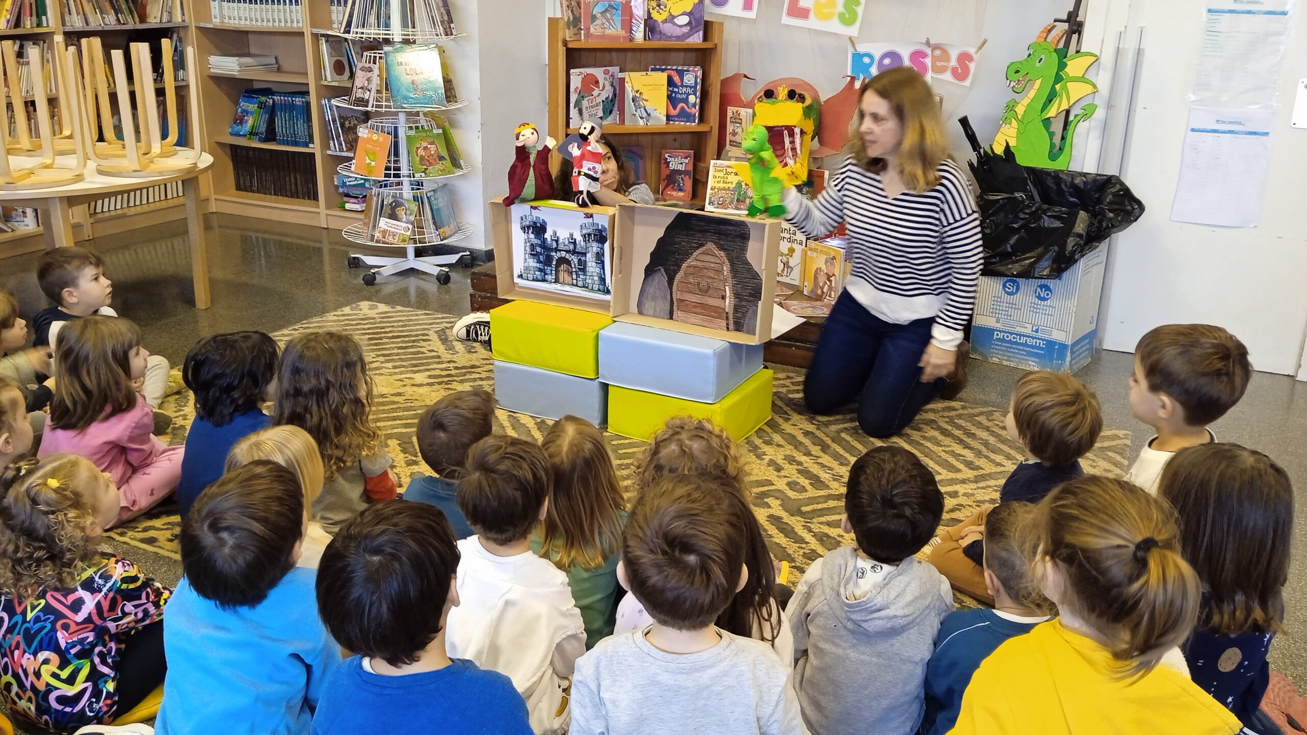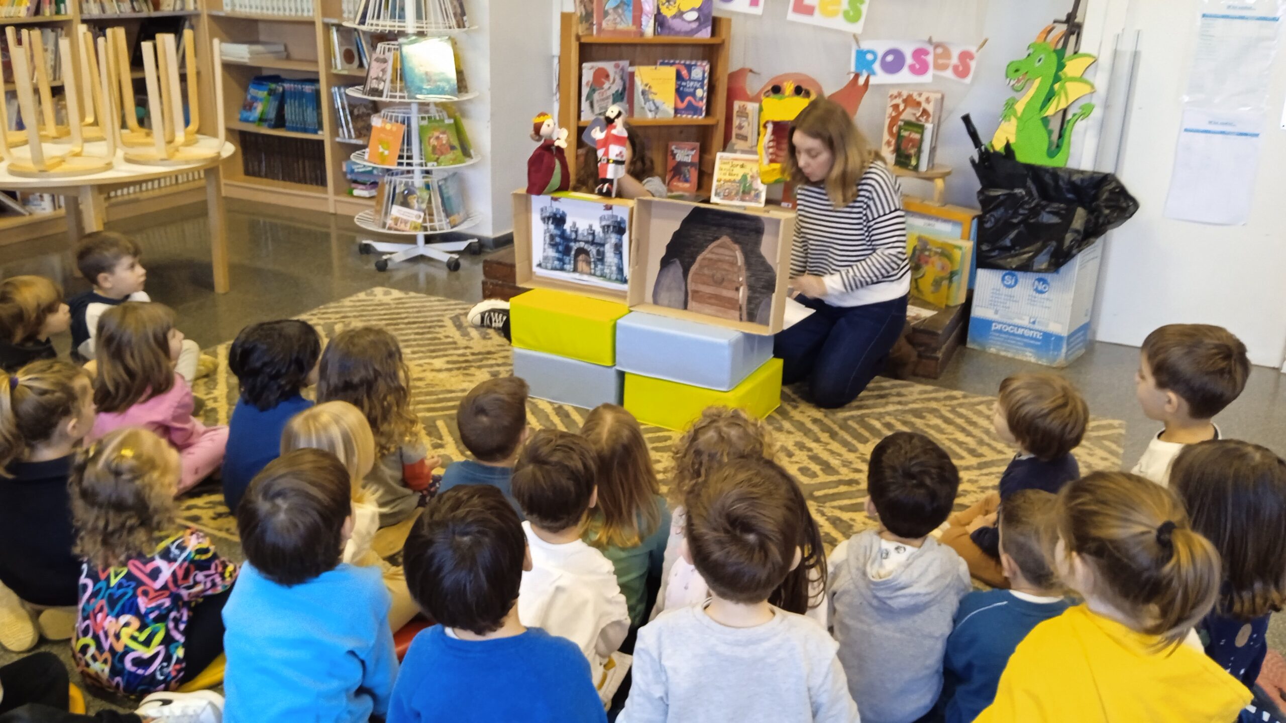 Aquest matí les bibliotecàries de la biblioteca de Sta. Coloma de Cervelló han vingut a la nostra escola per fer conèixer als infants d’I3 les activitats, i tots els contes i jocs que poden trobar. Els han explicat que els que encara no el tinguin, es poden fer el carnet de la biblioteca per poder agafar els contes i endur-se’ls a casa. Després els han explicat dos contes que també poden trobar a la biblioteca. Han estat molt atents a tot el que els hi han explicat.