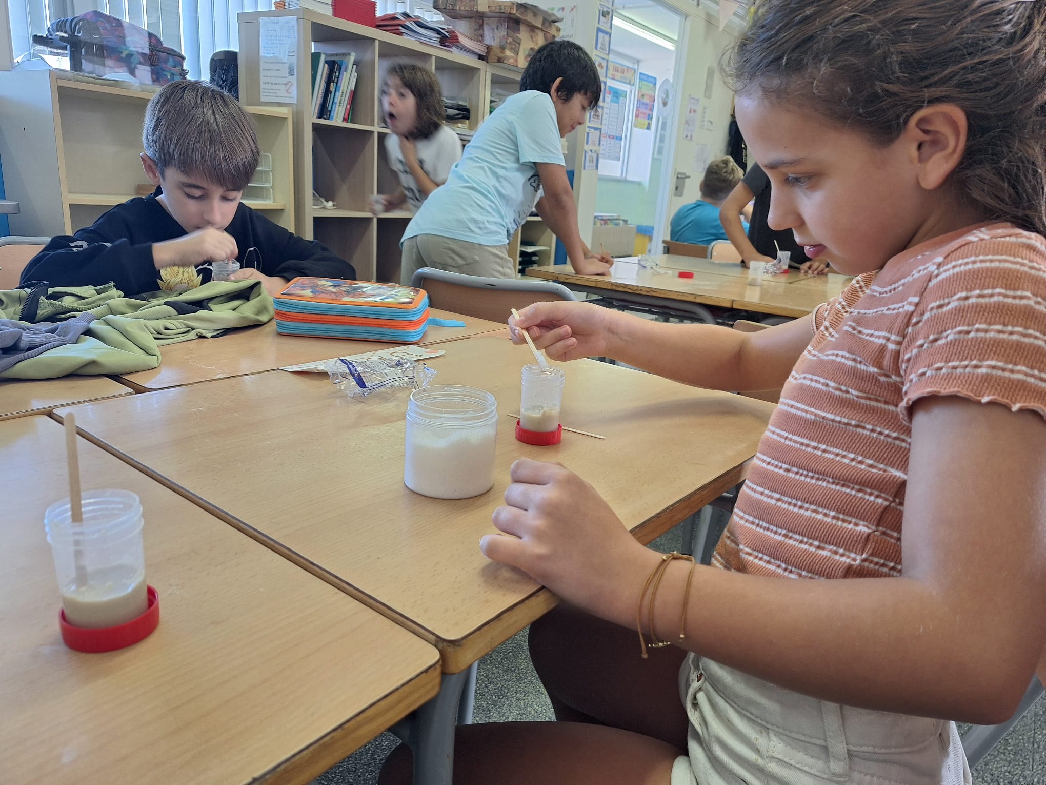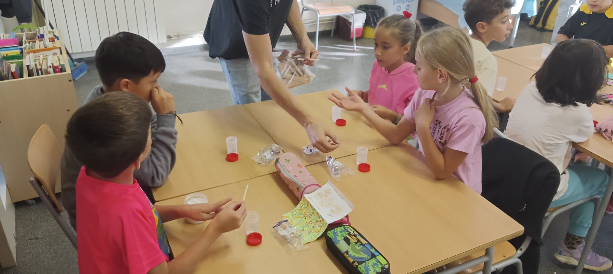 Dimecres 22 d’octubre els infants de 4t de primària van participar d’un taller amb l’objectiu de posar en valor els hàbits saludables, especialment els relacionats amb la higiene. De la mà d’uns científics van revisar quines bones pràctiques els ajuden a mantenir els bacteris a ratlla. I no només això, perquè l’activitat va tenir una part practica molt engrescadora: van crear la seva pròpia pasta de dents! Primer van conèixer la fórmula, després van preparar-la i per últim van triar l’aroma preferit.