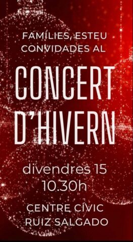 Benvolgudes famílies, un any més ens complau convidar-vos a l’espectacular concert d’hivern que han preparat els xiquets i les xiquetes de l’escola. Us esperem el divendres 15 de desembre a les 10:30h al Centre Cívic Ruiz Salgado. Ubicació: https://maps.app.goo.gl/p6qa5h1Sedt3Pc1G6 Ordre d’actuacions 1- Comunitat de menuts 2- 1r i 2n 3- 3r i 4t 4- 5t […]