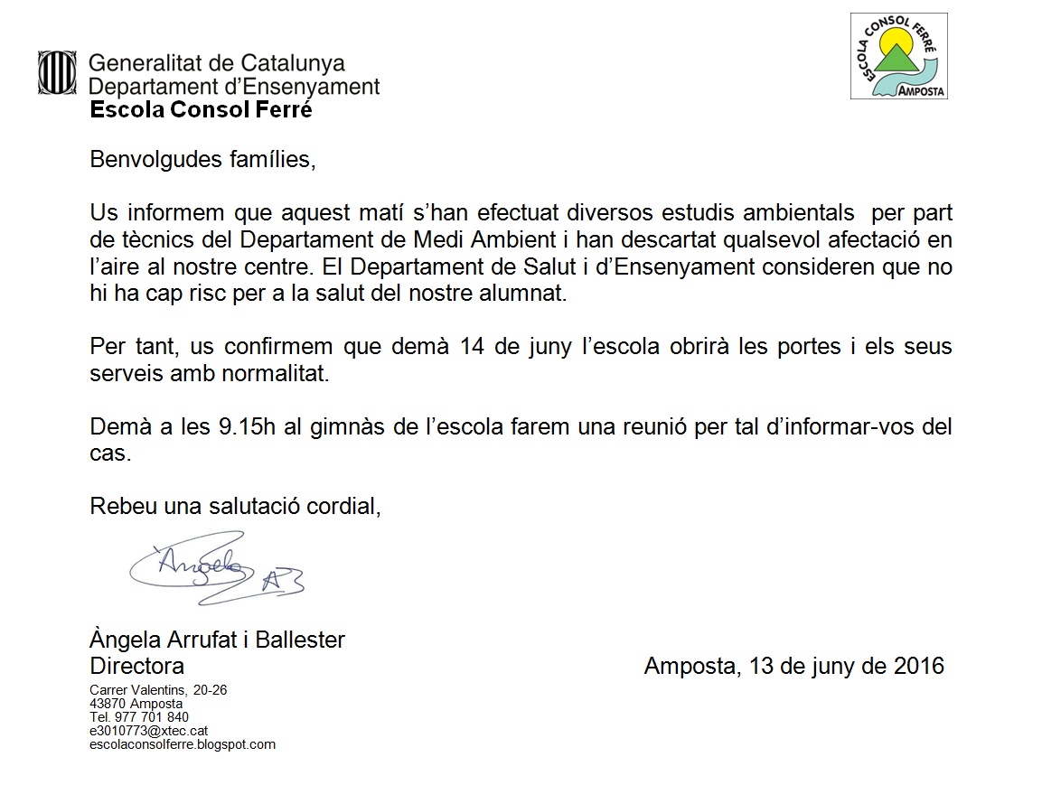 Demà 14 de juny, l’escola torna a la normalitat Feu un comentari / Per admin / 13 de juny de 2016 / General