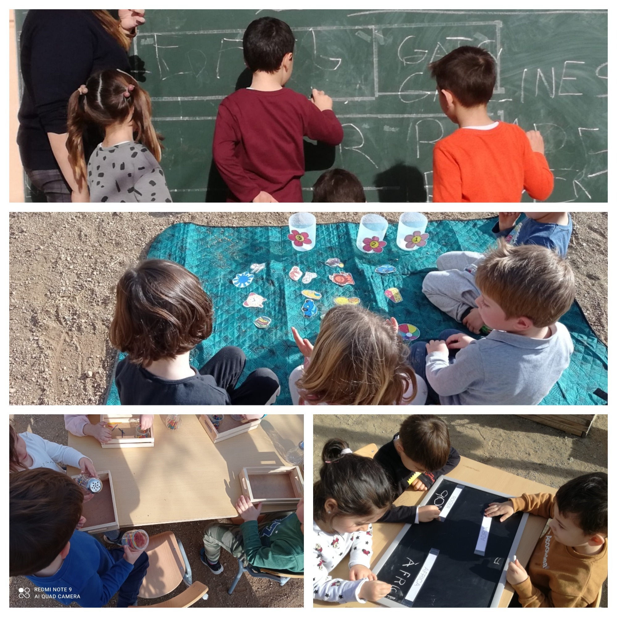 Qui diu que escriure, picar paraules i el treball de la psicomotricitat fina no es pot fer a l’ aire lliure? Penseu que és molta feina?