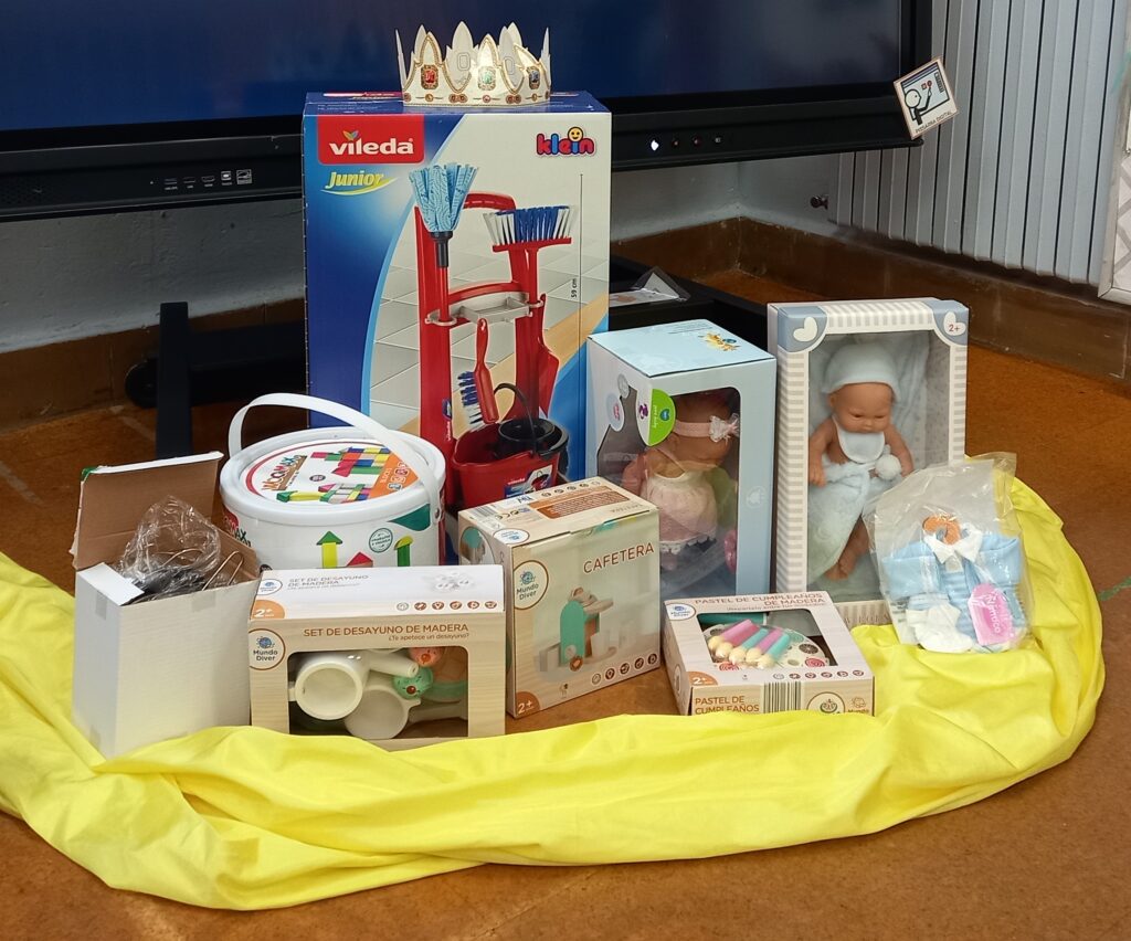 Els Reis han arribat als Convents i ens han deixat molts regals per compartir amb tots els nens i nenes de la classe. Recordeu la carta que li vam fer a la patge Mandarina? doncs ho han encertat tot: bebes, jocs de cuineta, un carret de neteja, construccions… Quina il-lusió!