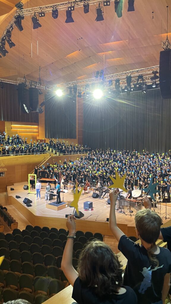 Aquest dilluns 16 de maig els nens i les nenes de cicle mitjà han actuat a l’Auditori de Barcelona i han representat la Cantània que es proposava per aquest curs i que connectava molt bé amb el tema de l’escola, ja que la història explica les aventures d’una nena i la seva àvia que entren al món de l’art.