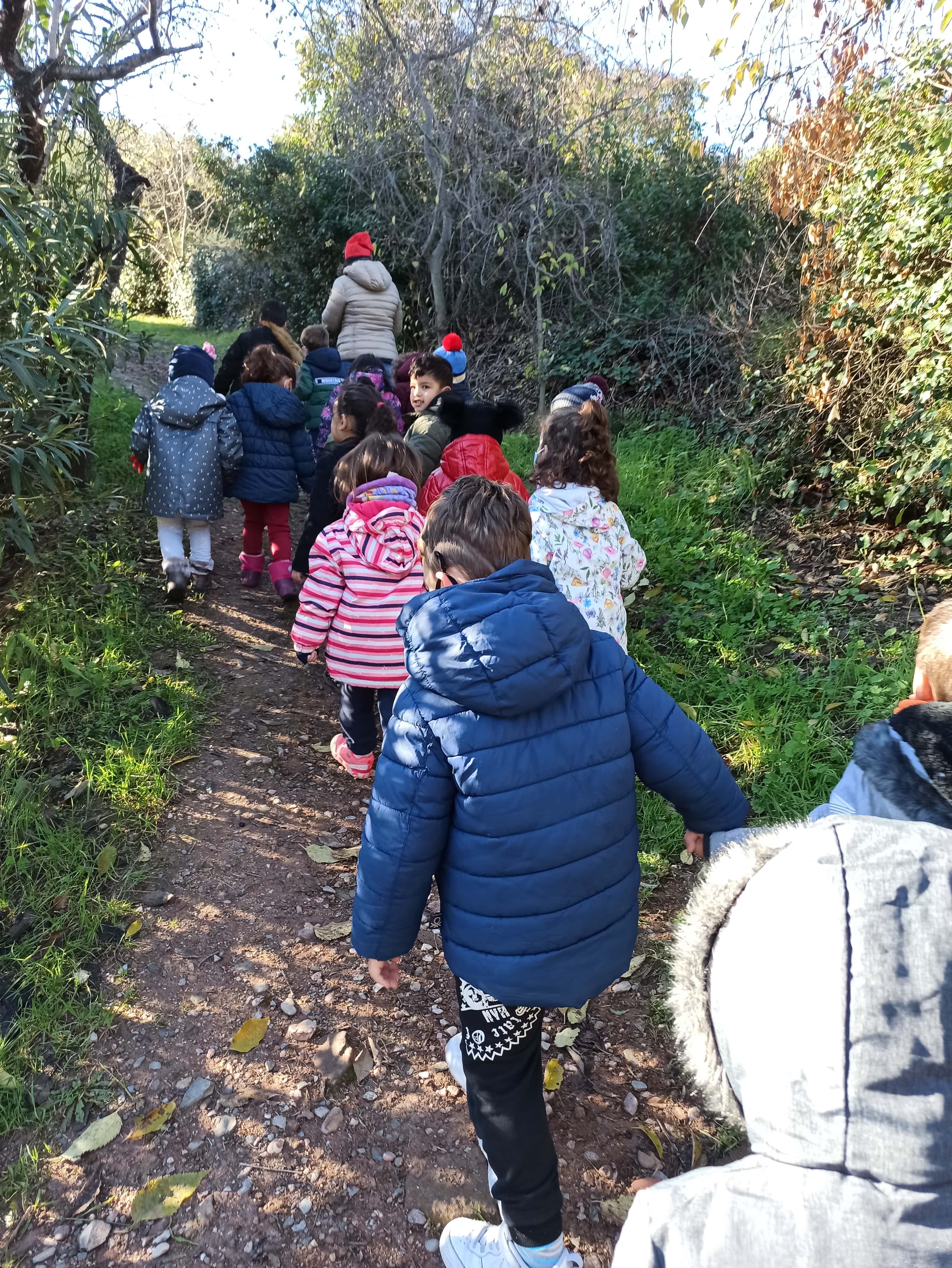 Cridàvem per tot el carrer “Tió!!, Tió, on ets??” Al veure un camí cap a la muntanya ens em decidit a caminar i allà, al mig del camí, estava el tió amb una nota en les que ens deia que ell poc a poc està arribant a l’escola i ell sol farà camí. El que hem de preparar un racó càlid i molt de menjar, que ve amb fred i molta gana!!