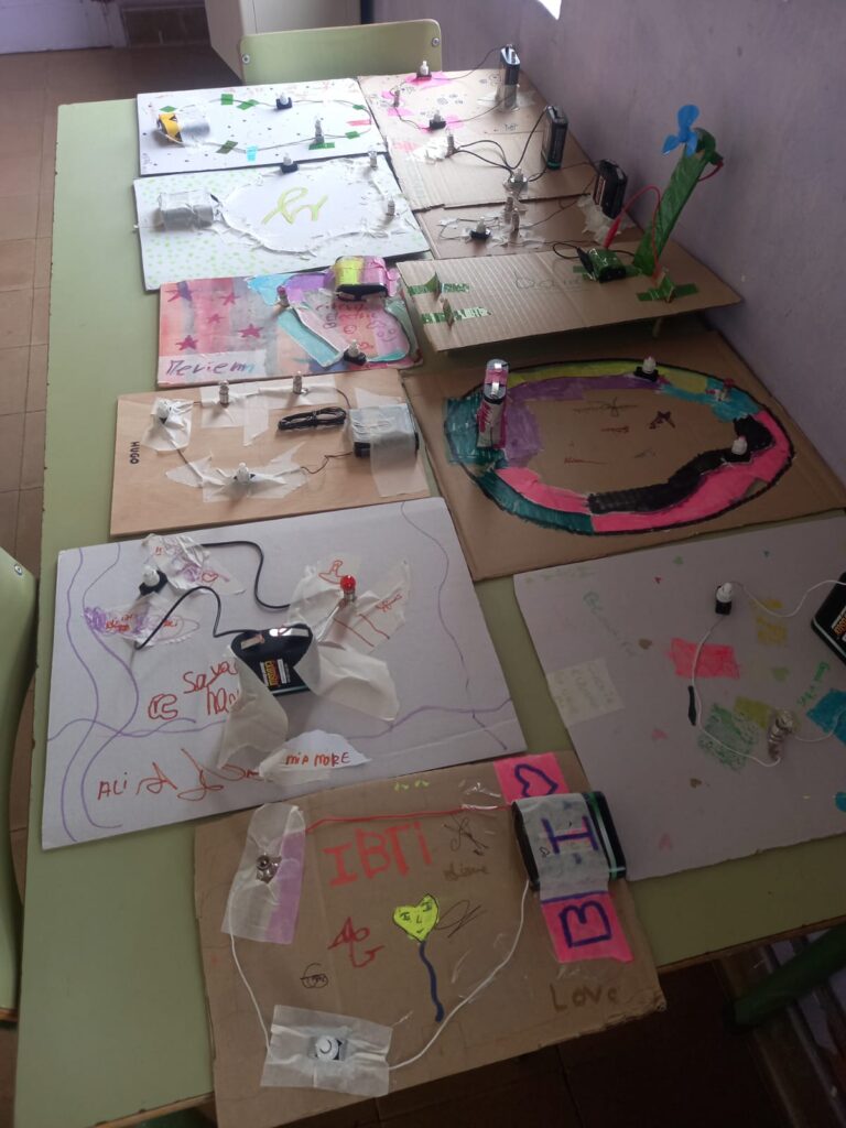 Imatges: Infants elaborant el seu 1r circuit elèctric més producte final.