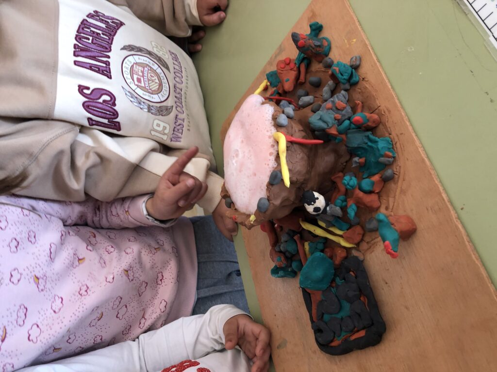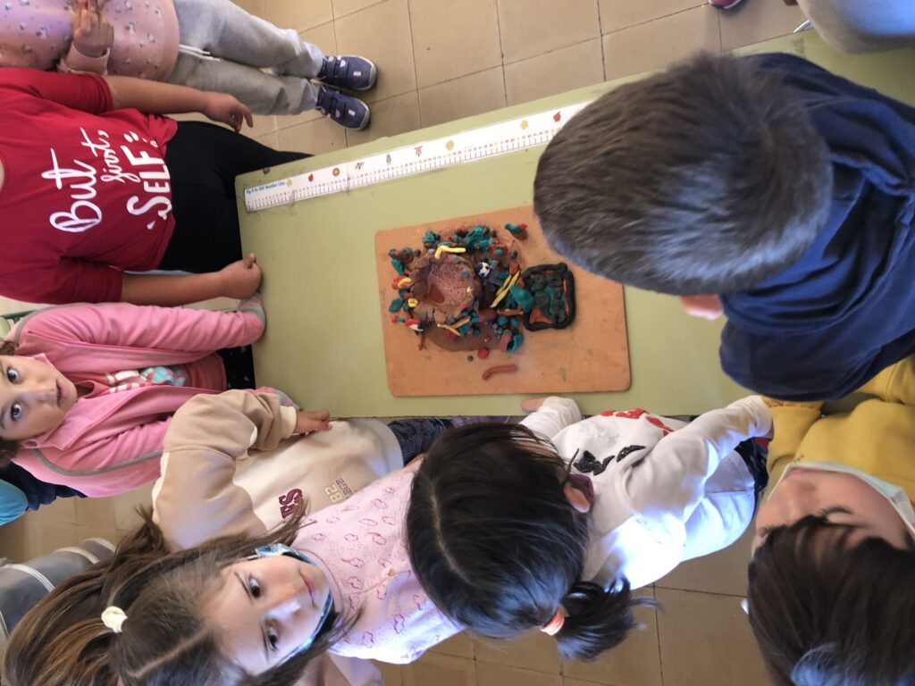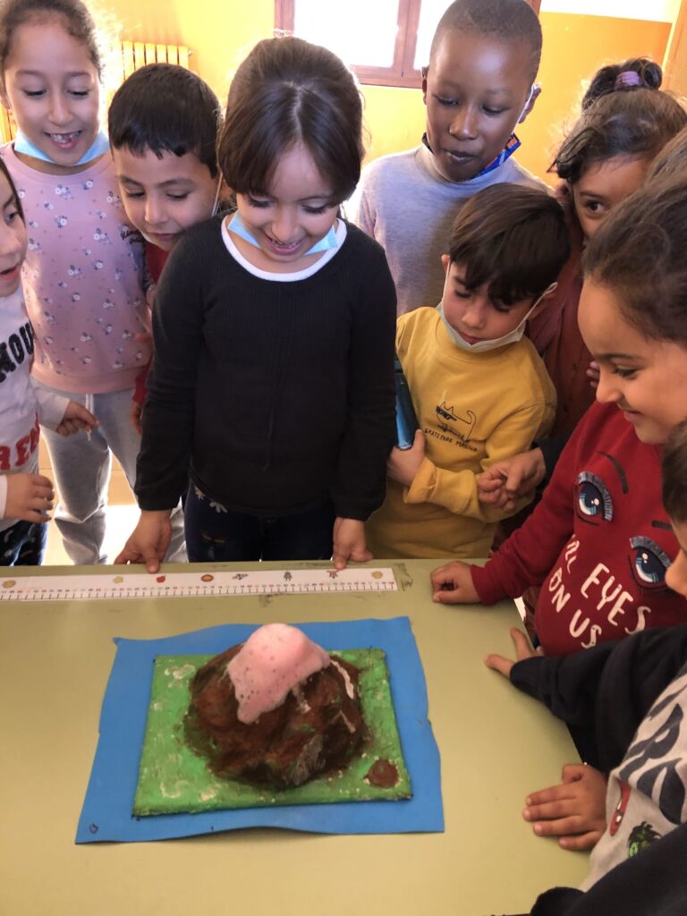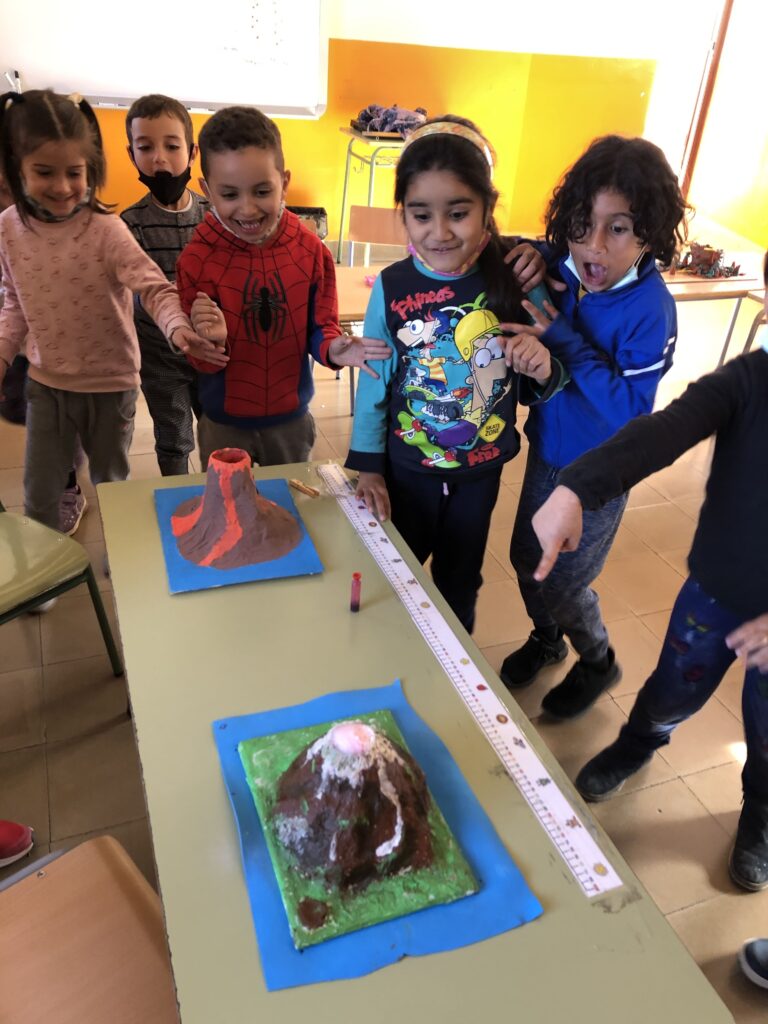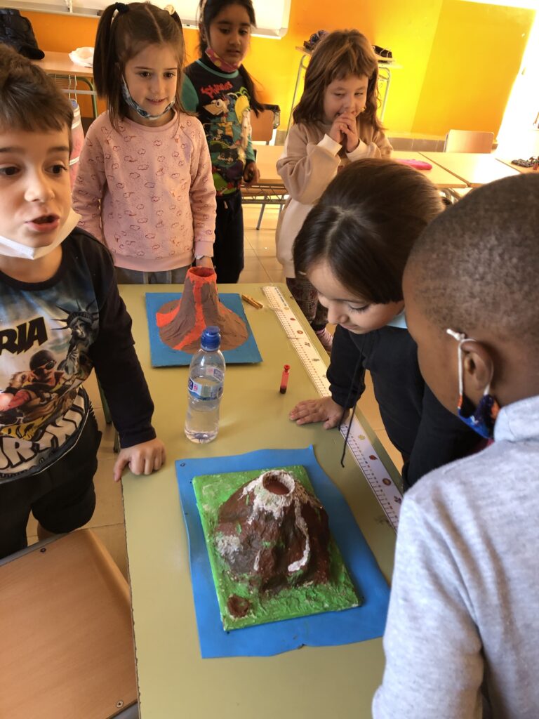 Desprès de la creació dels volcans no podíem deixar més temps per a fer l’experiment de l’erupció dels volcans. Així que molt emocionats ens vam col·locar a la salA polivalent i amb tots els ingredients necessaris vam fer l’experimentació:
