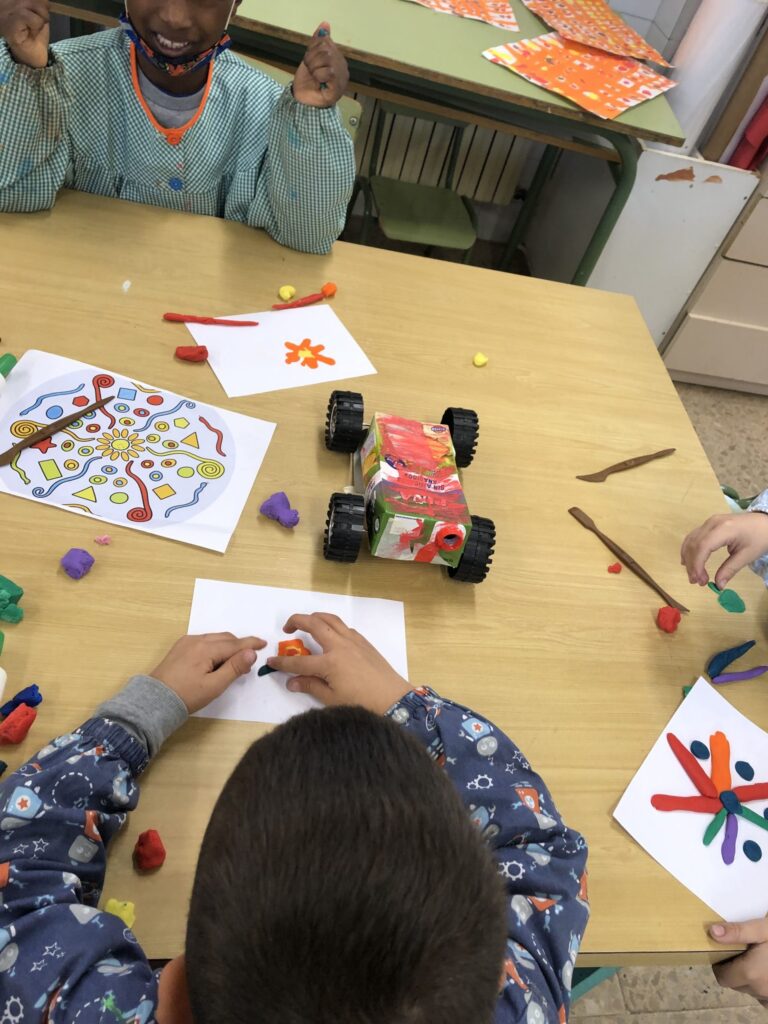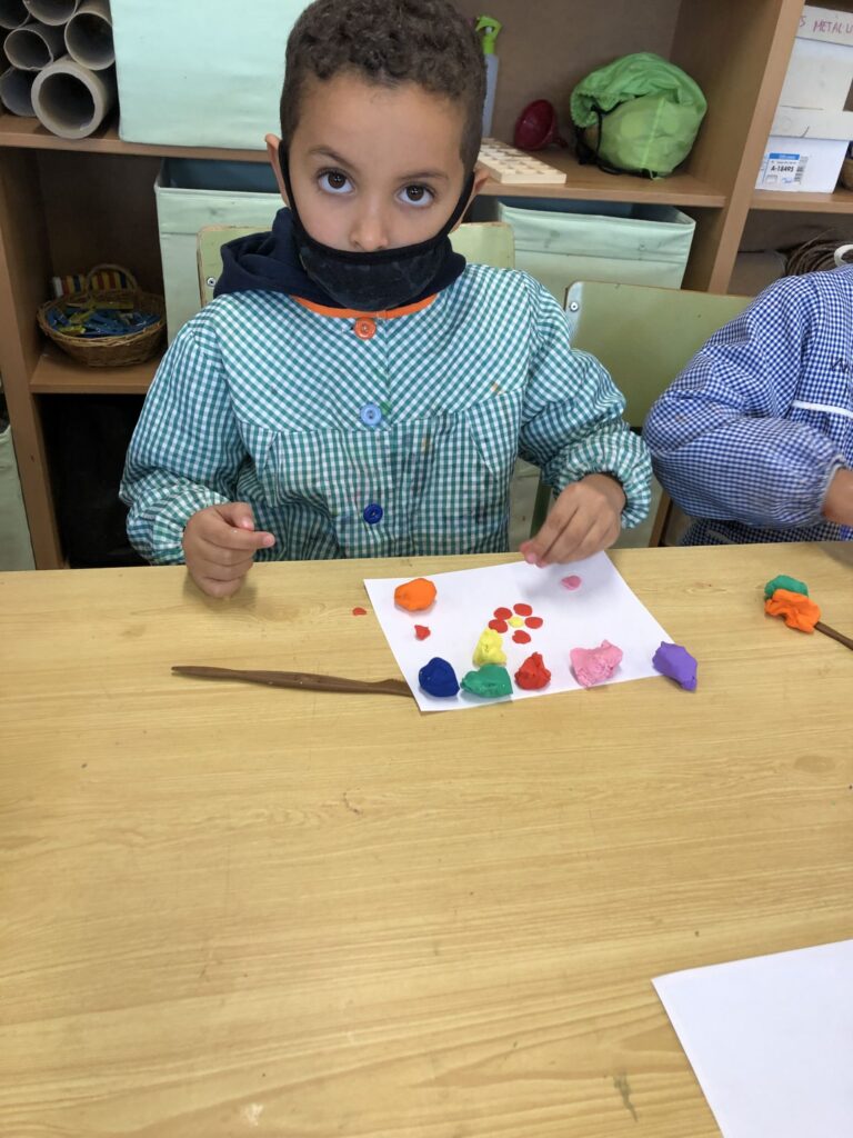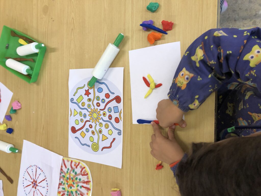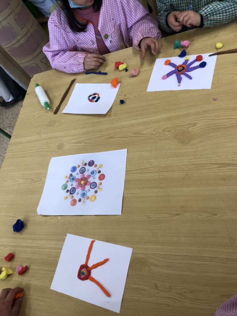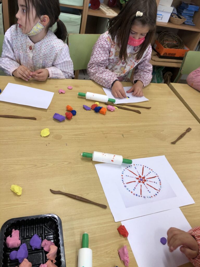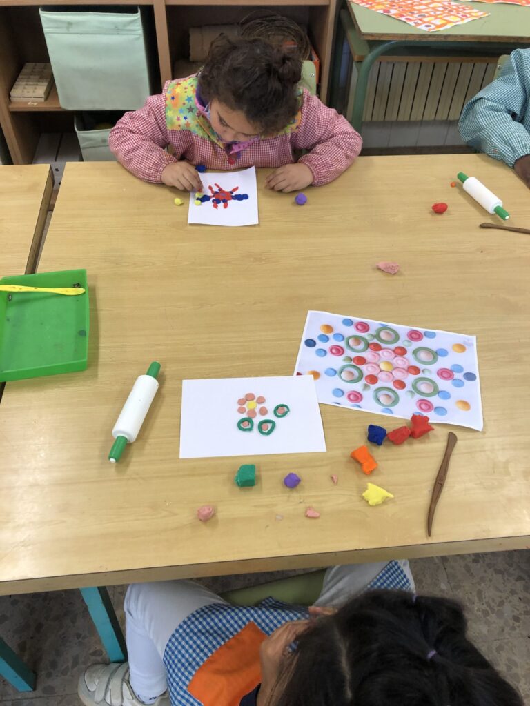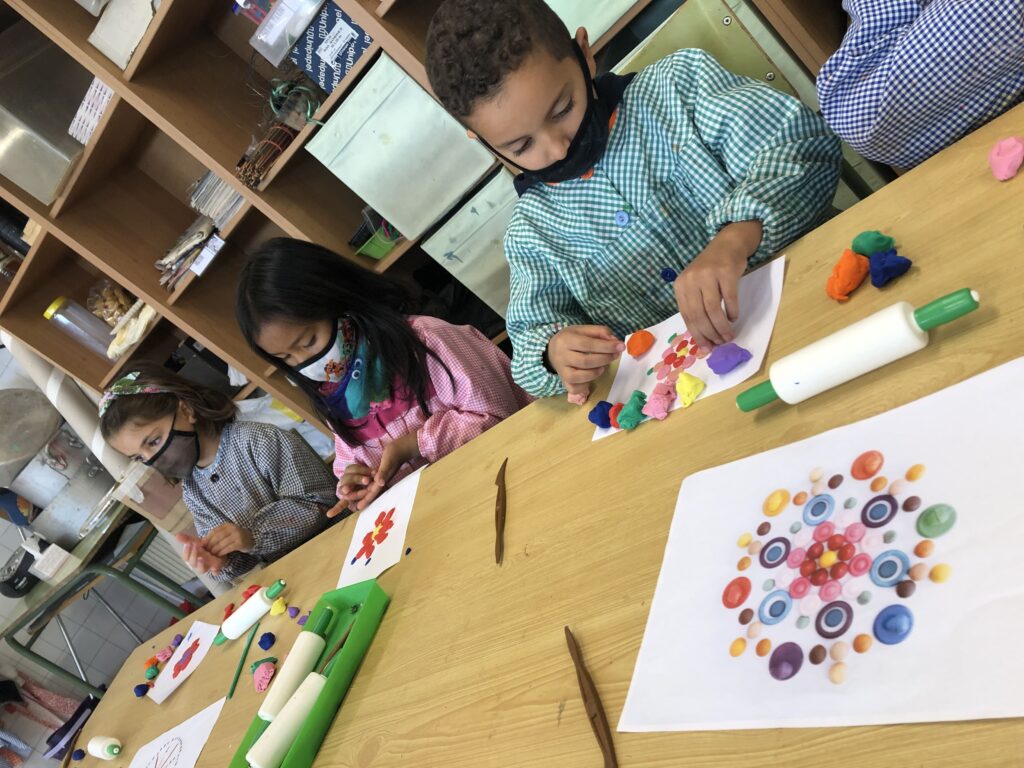La classe de primer al taller de plàstica hem creat un mandala de plastilina per posar al passadís i que sigui el nostre suport quan fem invents. Cadascú triava els colors que li agradaven i les formes, el més important era gaudir del moment.