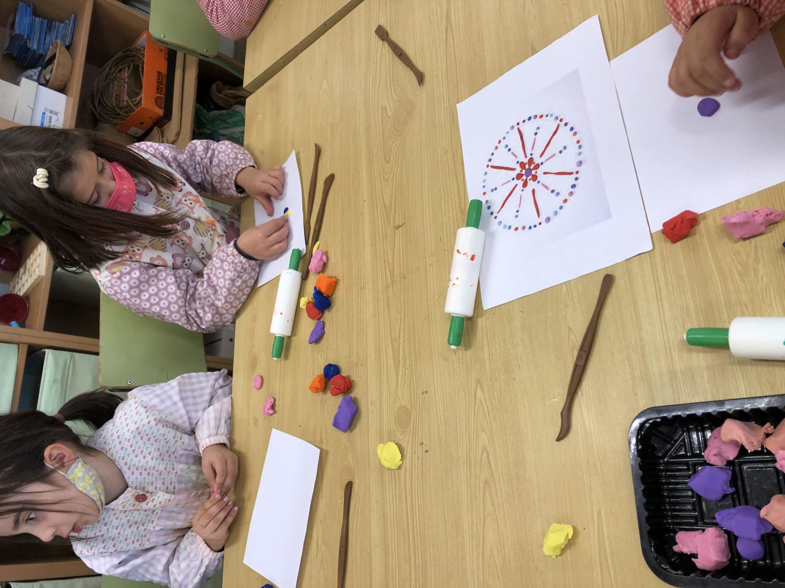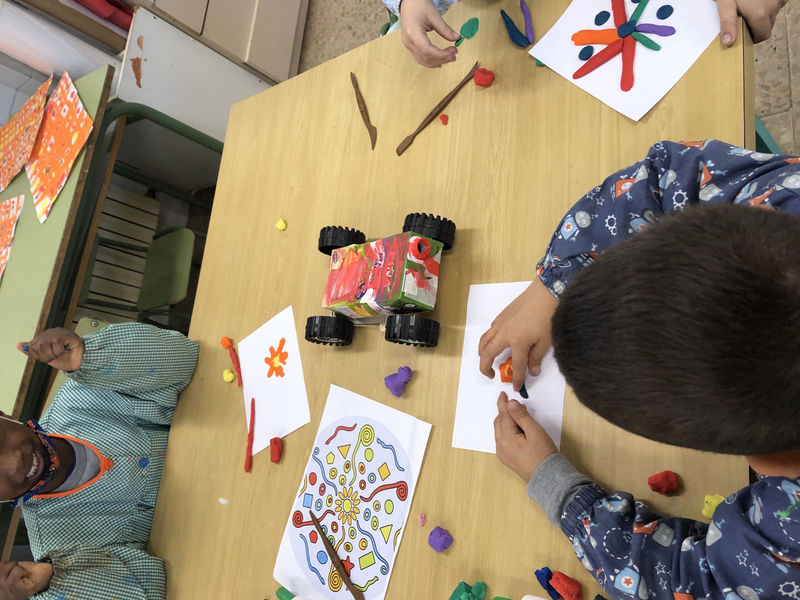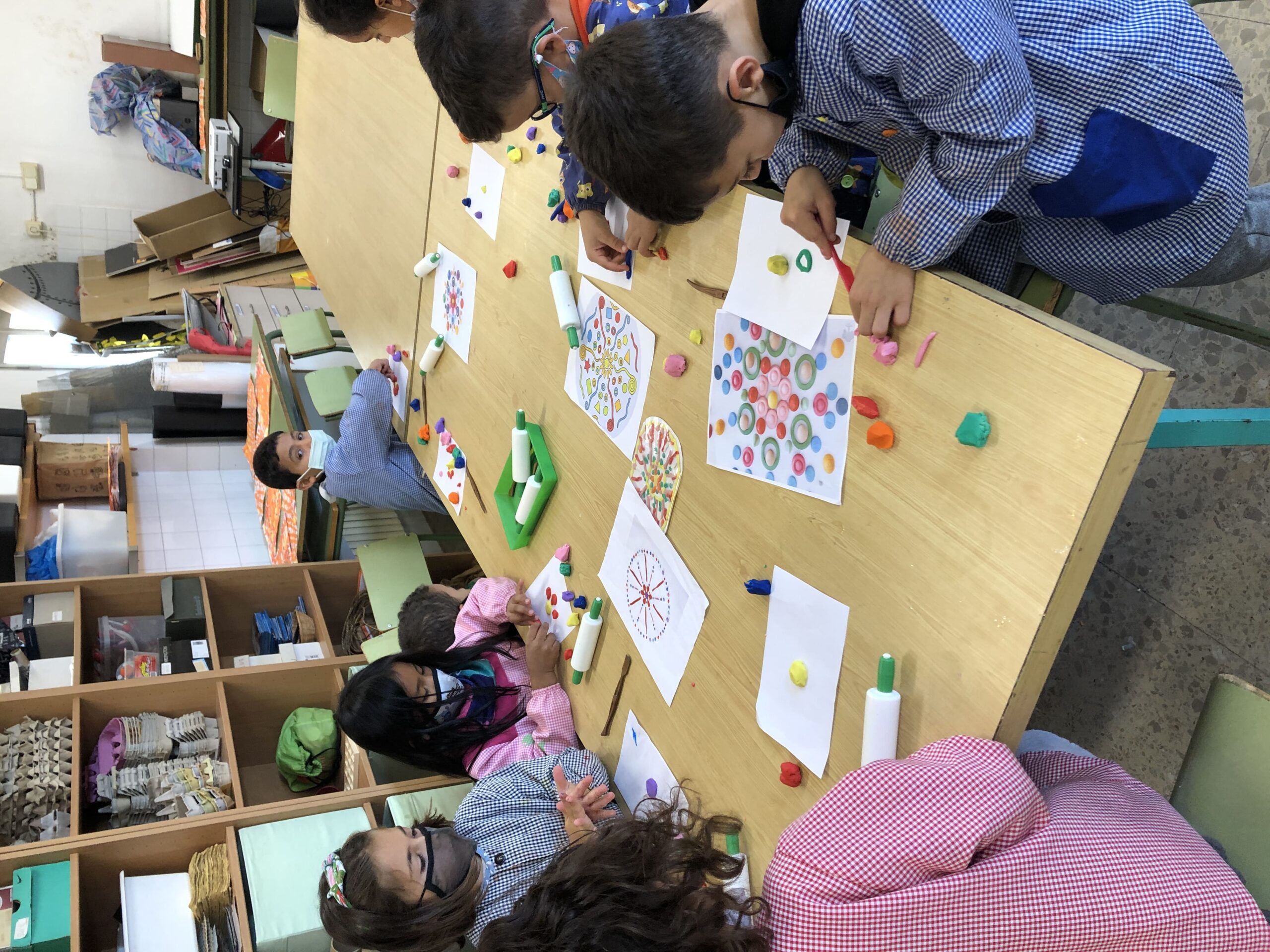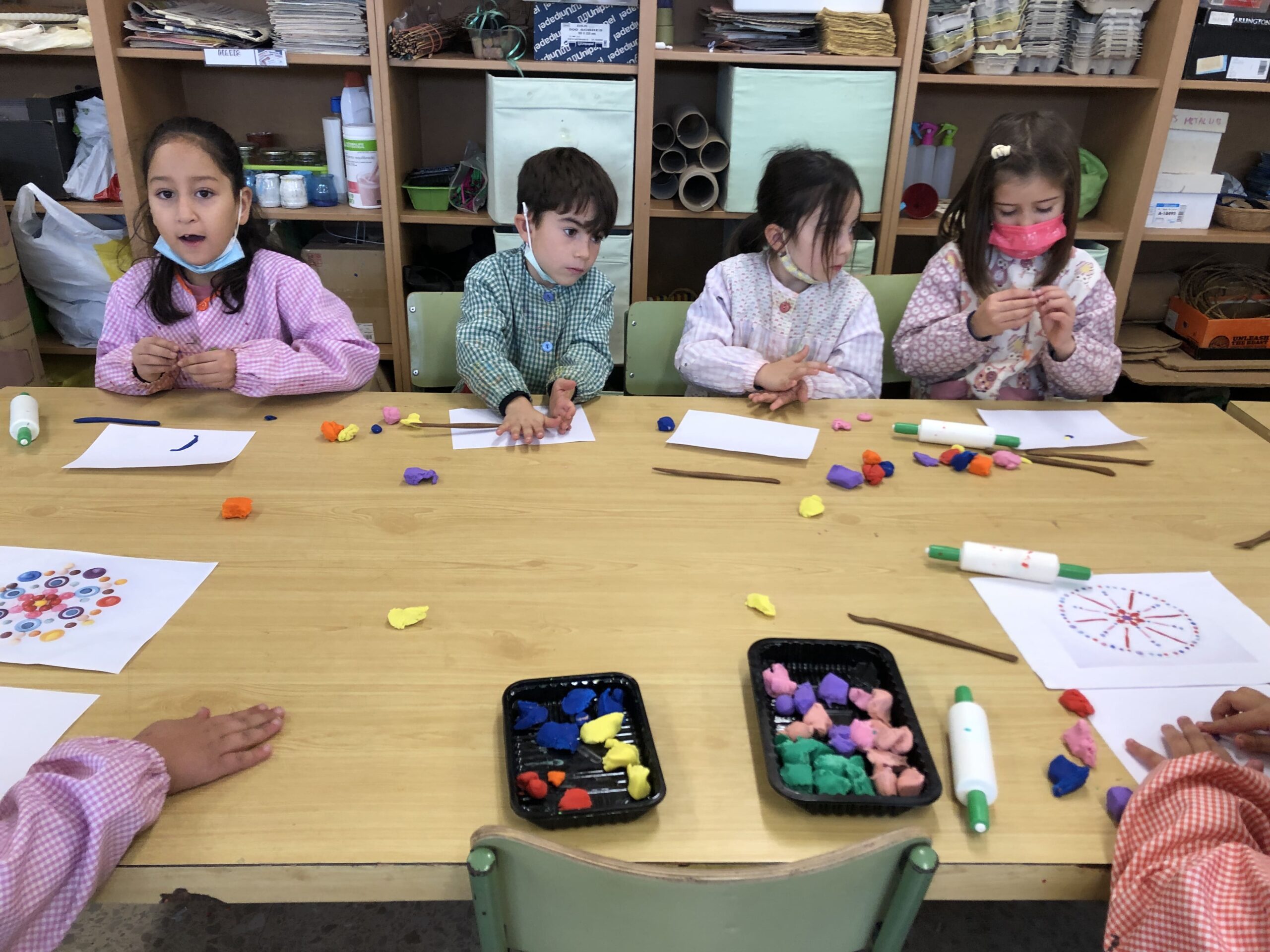 La classe de primer al taller de plàstica hem creat un mandala de plastilina per posar al passadís i que sigui el nostre suport quan fem invents. Cadascú triava els colors que li agradaven i les formes, el més important era gaudir del moment.