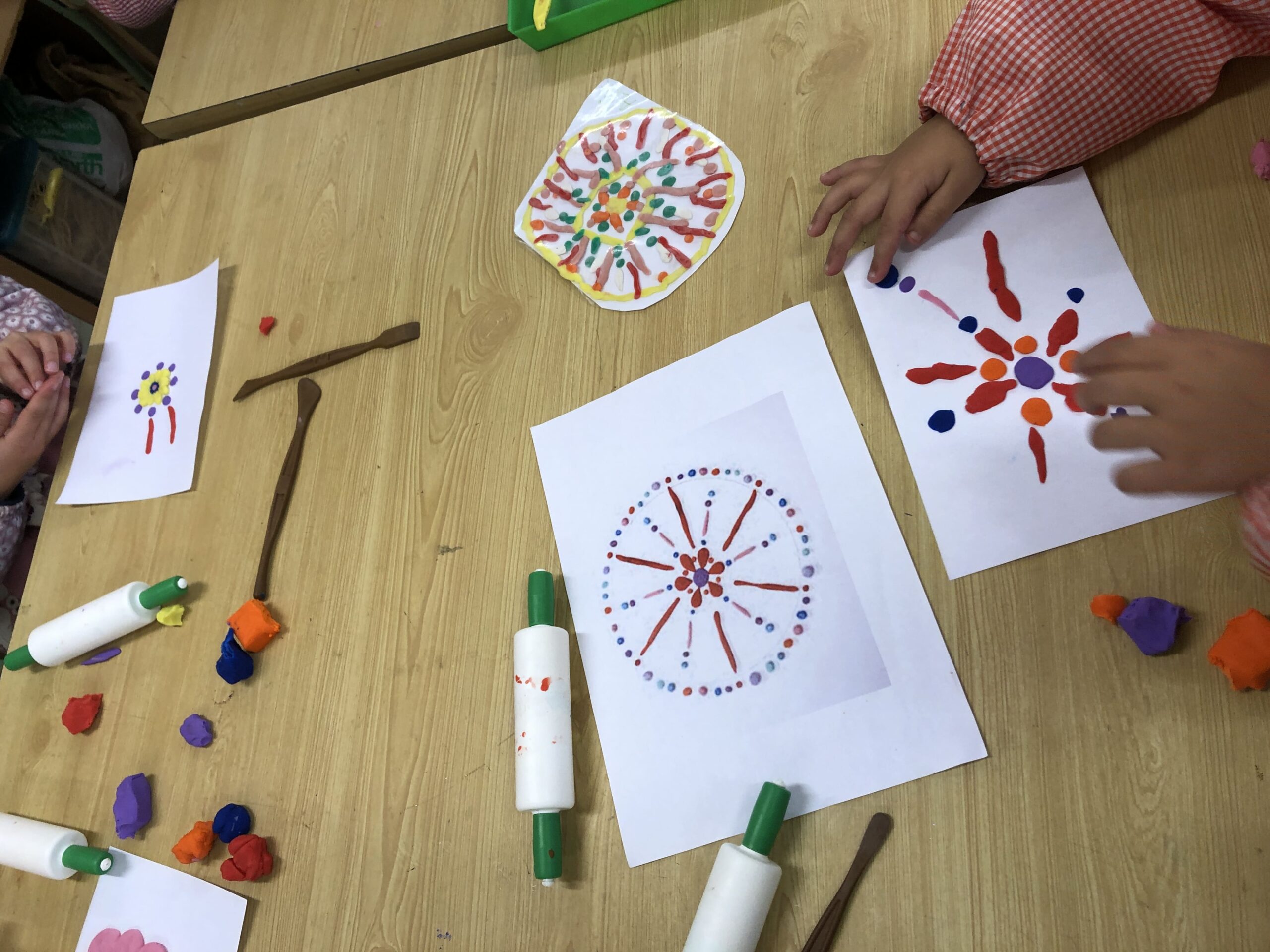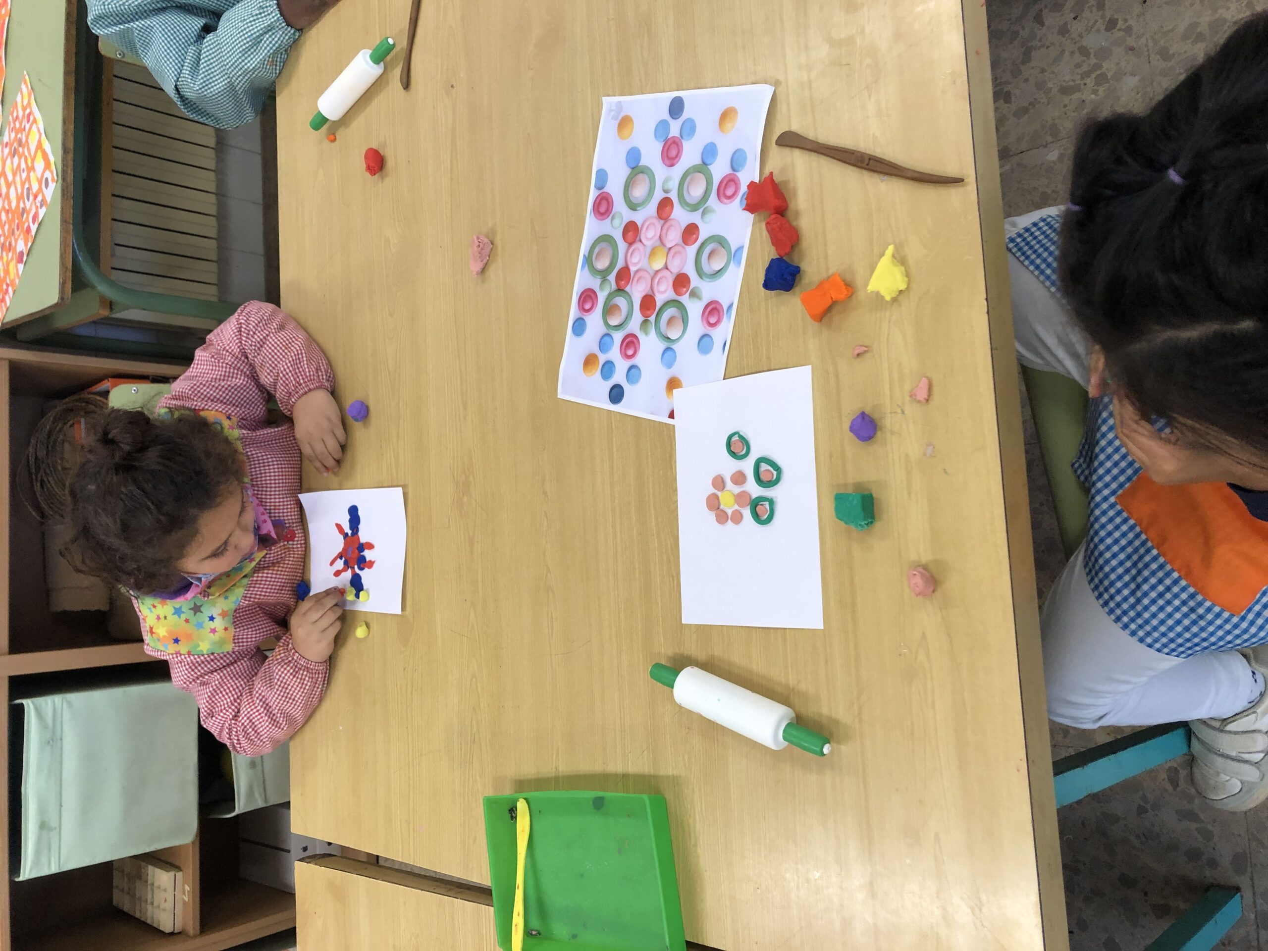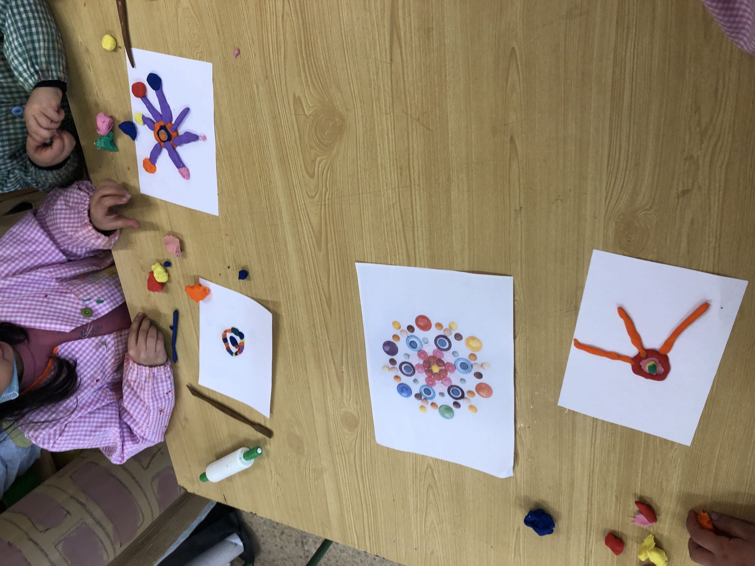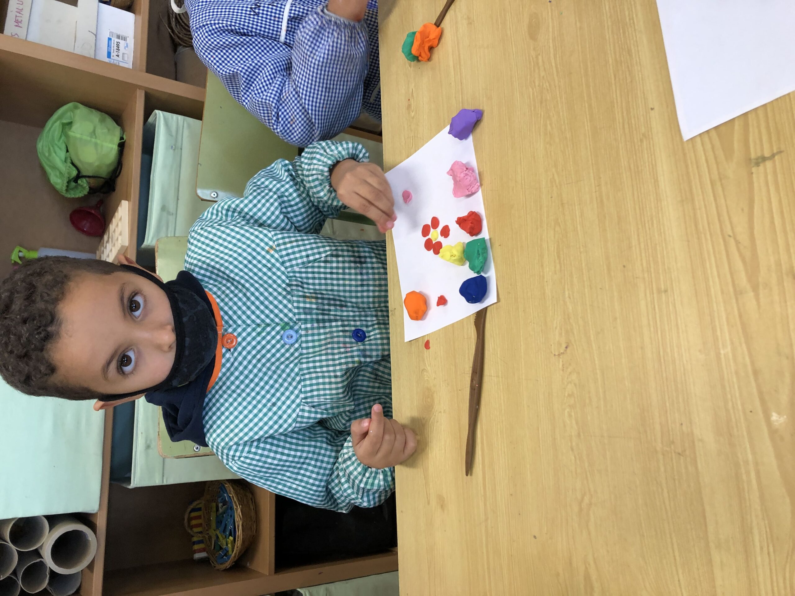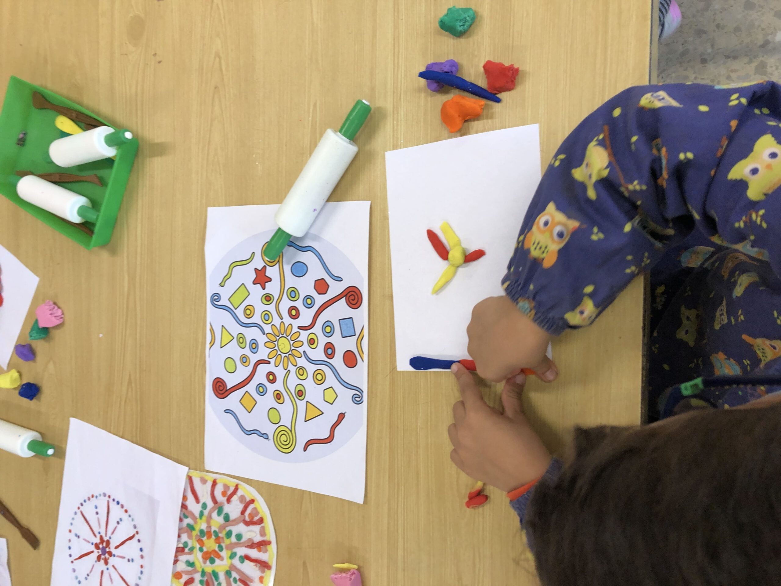 La classe de primer al taller de plàstica hem creat un mandala de plastilina per posar al passadís i que sigui el nostre suport quan fem invents. Cadascú triava els colors que li agradaven i les formes, el més important era gaudir del moment.
