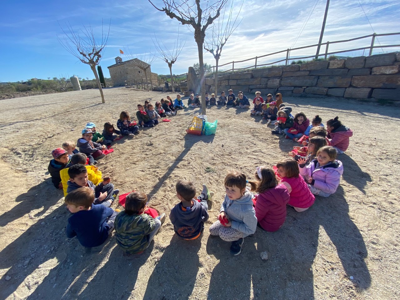 Avui pel matí hem fet una sortida per l’entorn del nostre poble. La comunitat dels petits ha anat a la Capelleta de Sant Magí, la comunitat dels mitjans ha anat a Sant Gallard i la Comunitat del Grans han caminat fins a Guialmons. Hem passat un matí fantàstic, jugant i rient en plena natura.