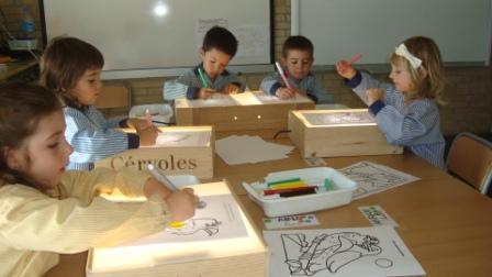 Aquesta manera de treballar implica una metodologia més creativa i flexible, en la que el rol del mestre és dinamitzar els aprenentatges i proporcionar oportunitats perque els alumnes puguin explorar tots els centres d’aprenentatges. Aquí podeu veure els nens i nenes de P4 treballant per racons.