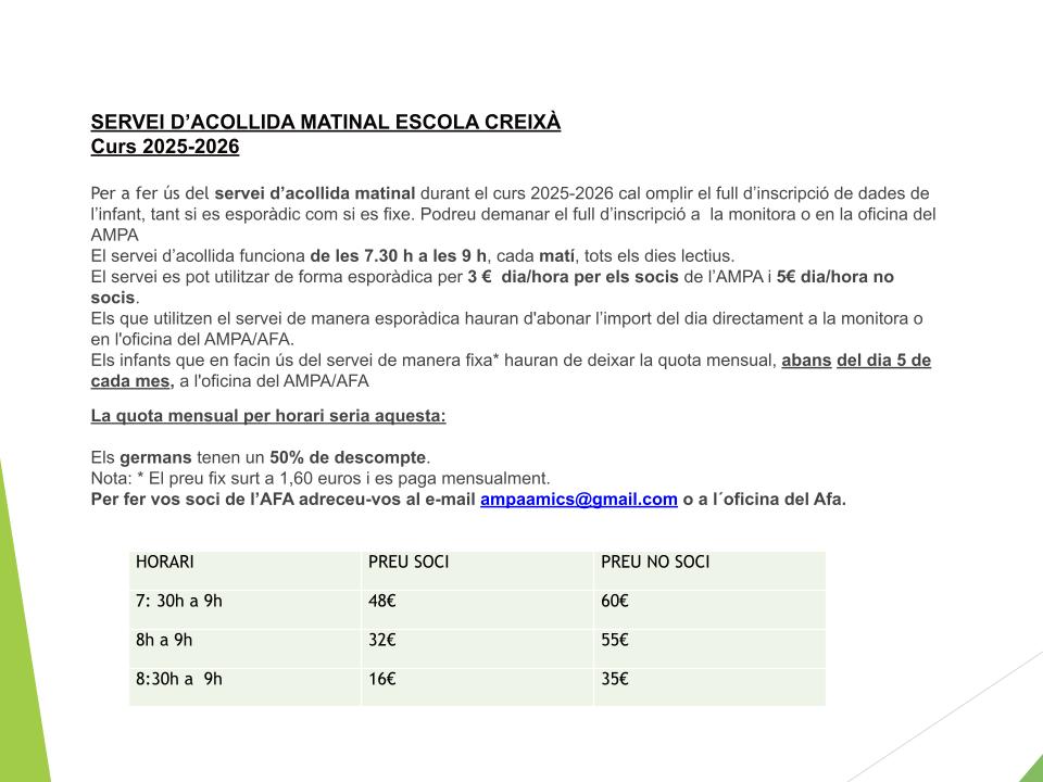 AFA AMICS DEL CREIXÀ ampaamics@gmail.com
