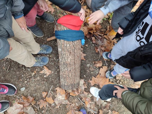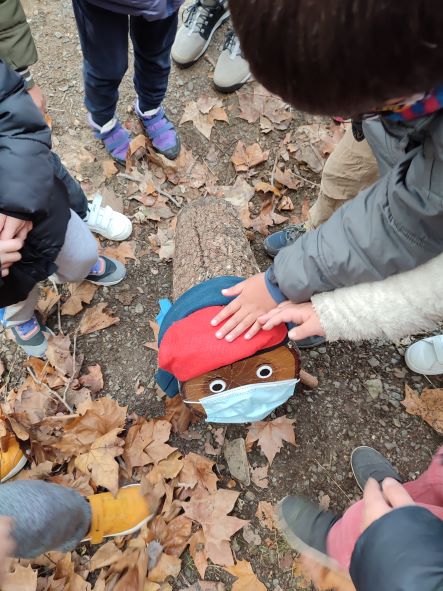 Després de molt buscar, l’hem trobat amagat darrere un arbre tot cobert de fulles, doncs feia molt fred!