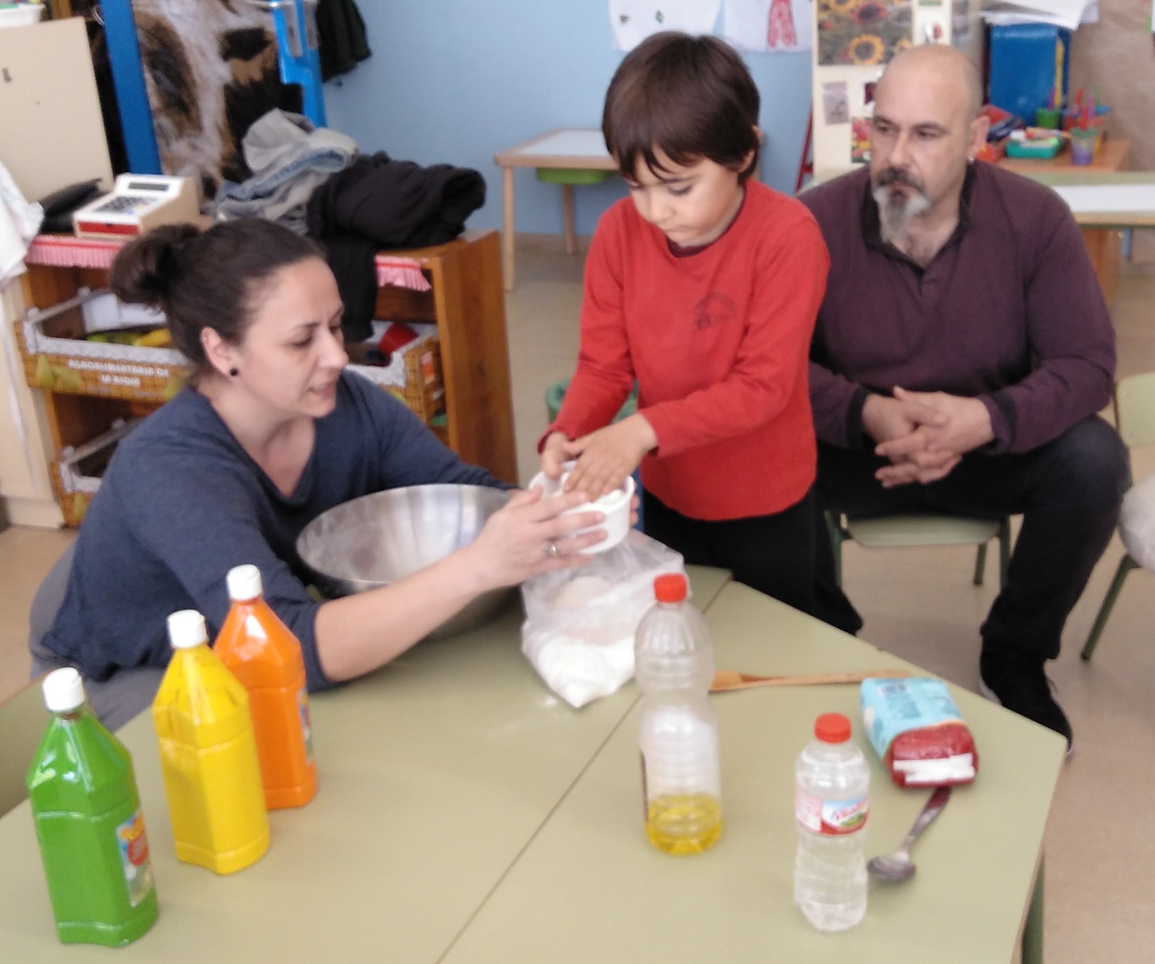 Per El Lluc amb la seva mare ens van ensenyar a fer pintura comestible, cosa molt recomanable per pintar amb nens i nenes que encara es posen les coses a la boca, com els de la llar.