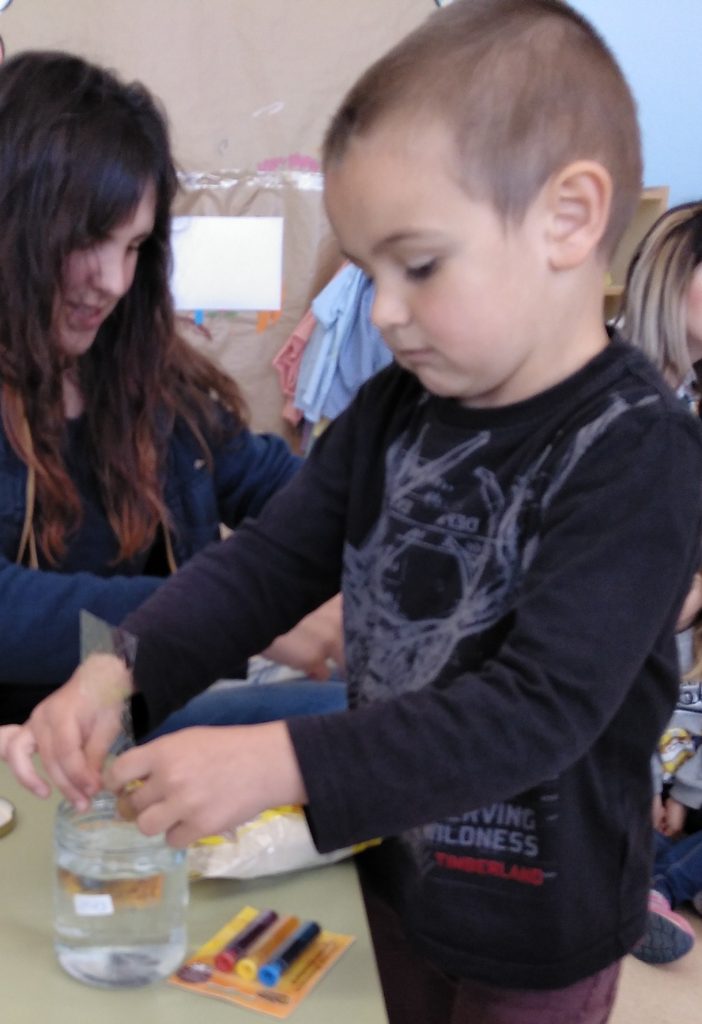 Per El Lluc amb la seva mare ens van ensenyar a fer pintura comestible, cosa molt recomanable per pintar amb nens i nenes que encara es posen les coses a la boca, com els de la llar.