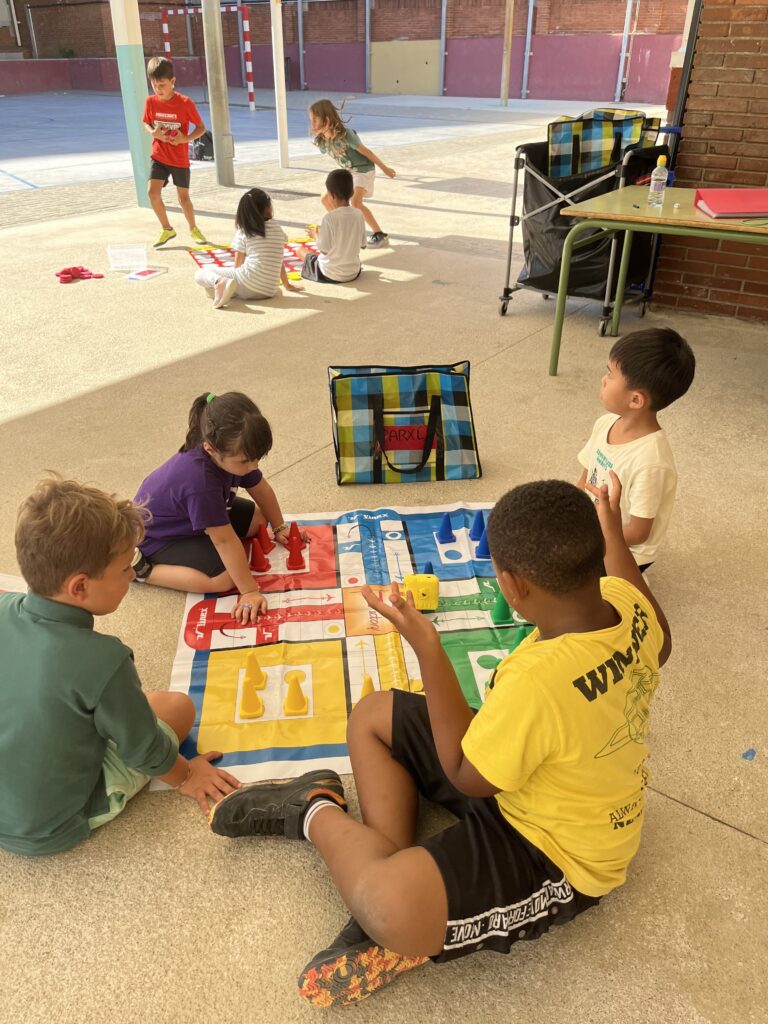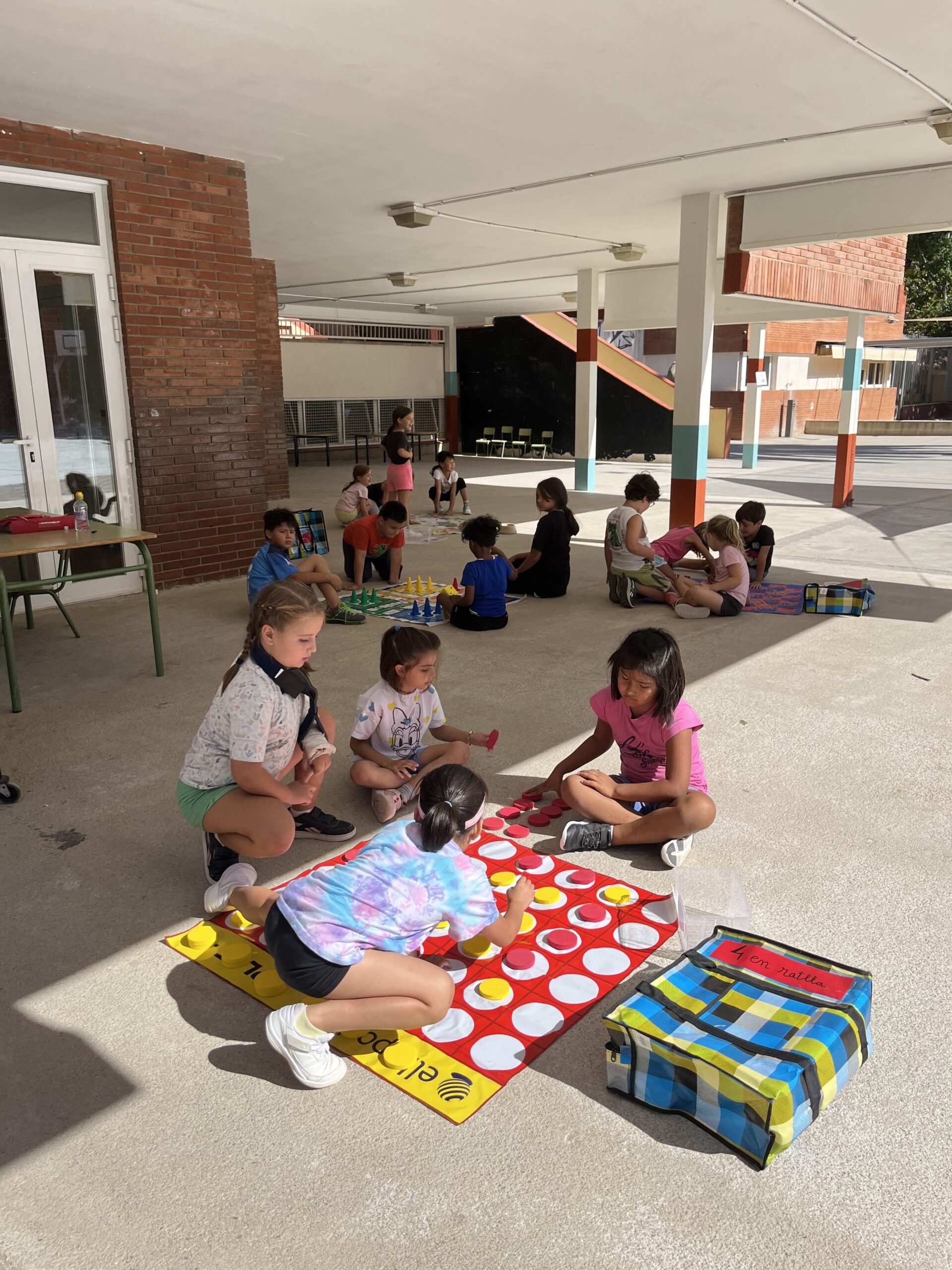 Els nens i nenes de la comunitat dels mitjans, 1r, 2n i 3r, ja tenen preparats els jocs amb què podran jugar a l’hora del pati de l’esmorzar d’aquest nou curs 23/24. Fa uns dies, a l’hora d’educació física, vàrem recordar les normes i diferents protocols dels jocs. En aquest cas són JOCS DE TAULA GEGANTS per jugar nens i nenes de diferents classes i nivells.