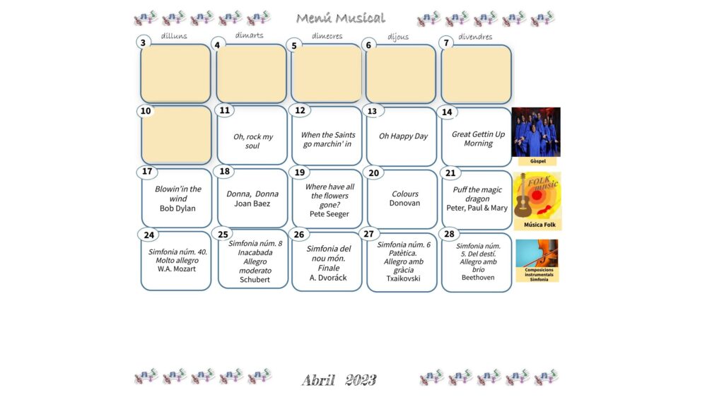 MENÚ MUSICAL D’ABRIL