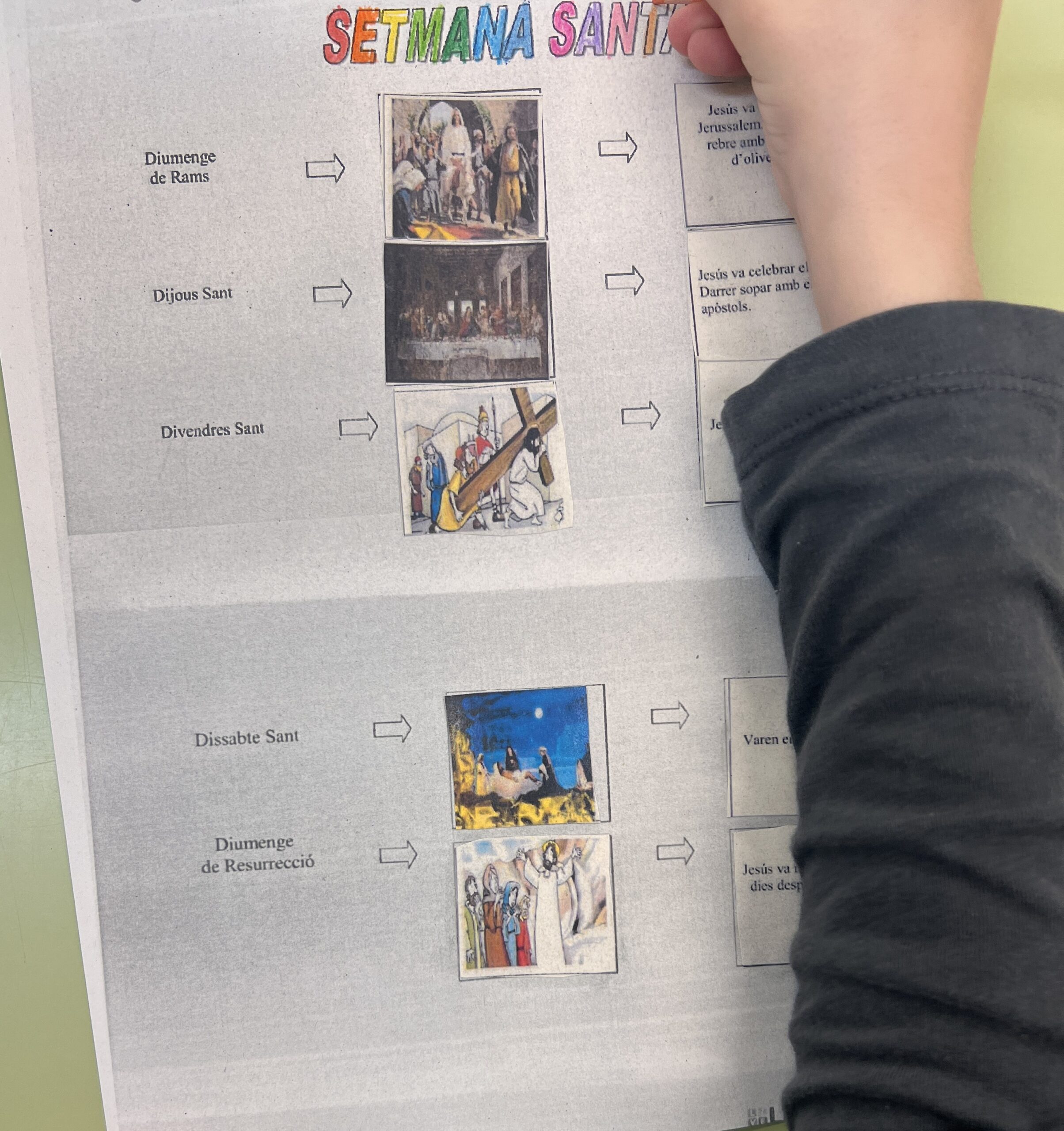 Aquestes últimes setmanes, l’alumnat de religió ha treballat la Quaresma i tot el que això comporta. Primer rebem a la Vella Quaresma i cada setmana li hem anat llevant una pota. També s’ha aprofundit en el temps de la Quaresma, on aprofitem per a reflexionar, canviar, millorar i preparar-nos per a la Setmana Santa, setmana en què recordem el missatge de Jesús, el seu sacrifici i tot el que va passar eixa setmana.