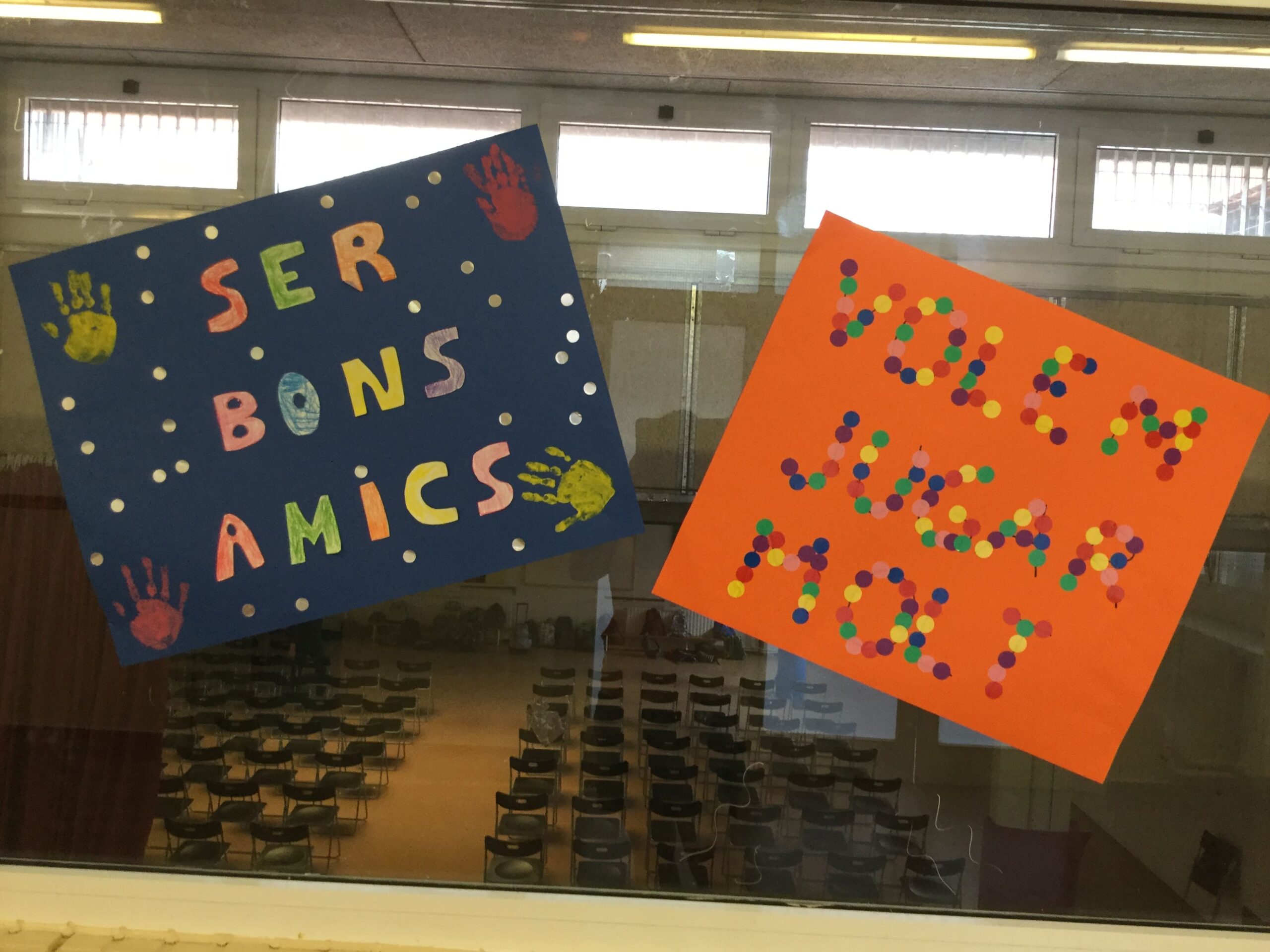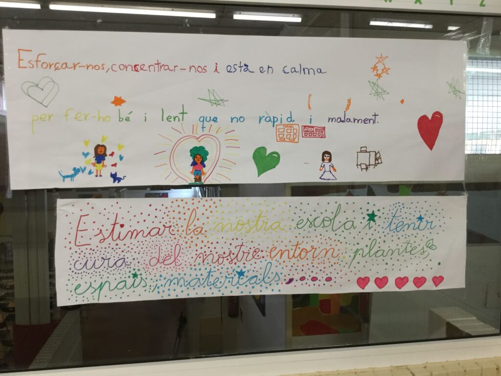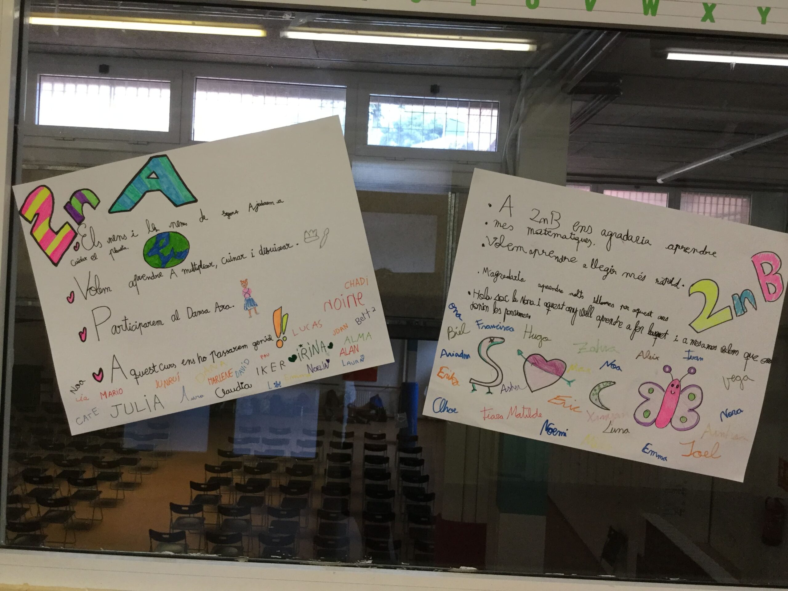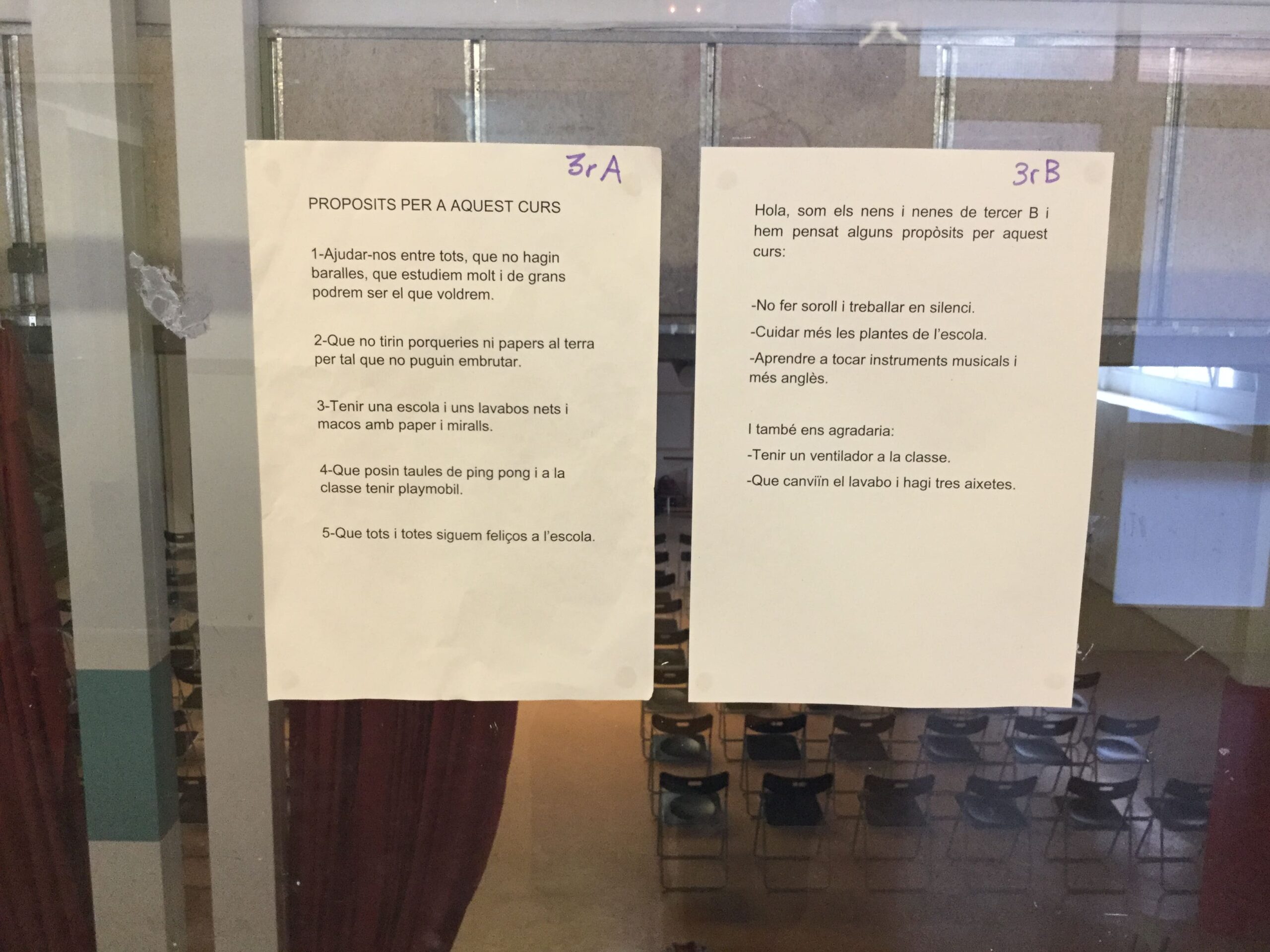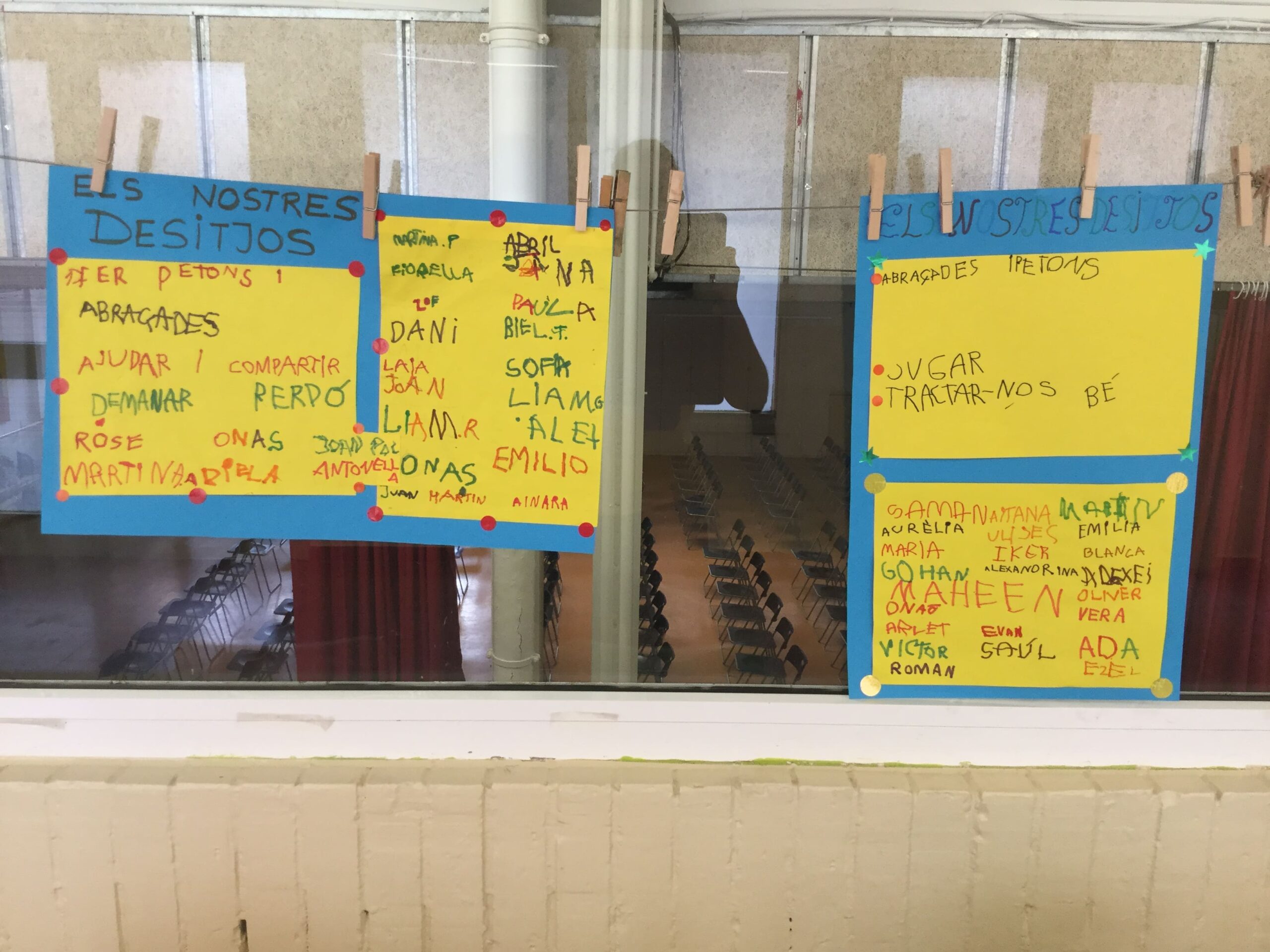 Ens hem reunit totes les classes des d’educació I4 fins a 6è al pati i hem explicat els nostres propòsits i desitjos per aquest curs.